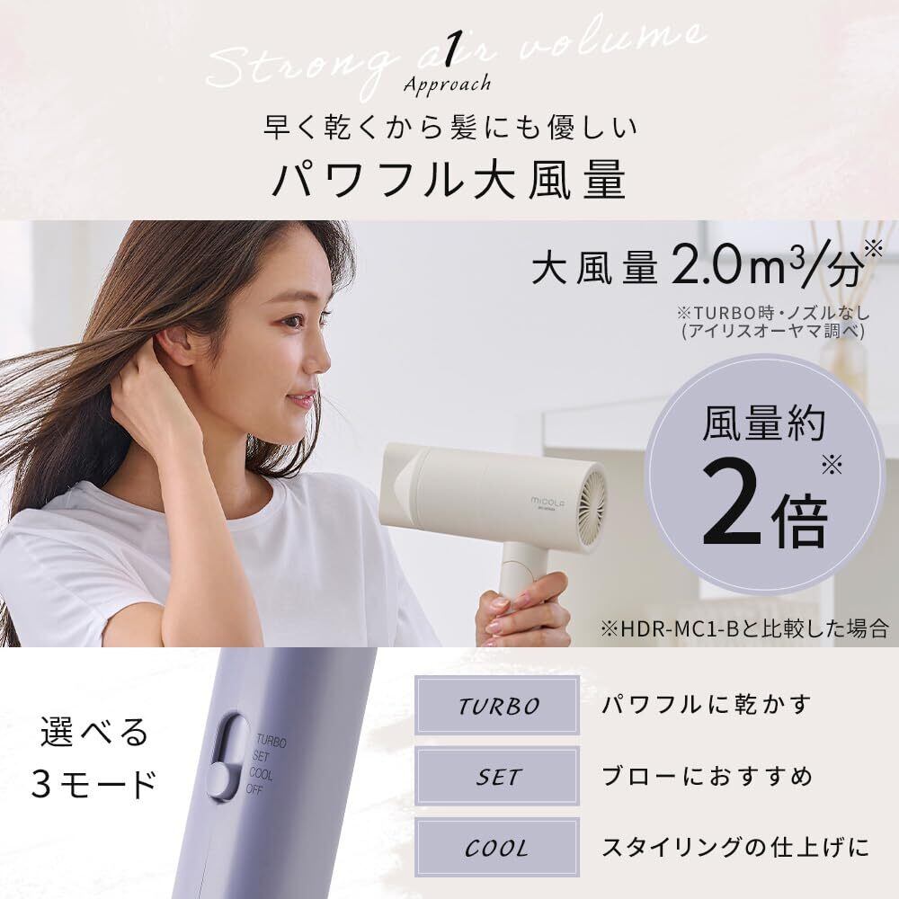 \【◆アイリスオーヤマ MICOLA ドライヤー | 大風量と速乾性で、美しい髪を簡単に!】/