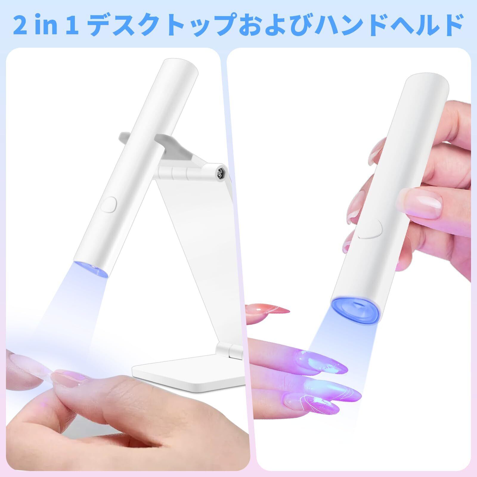 折りたたみスタンド付きのネイルライト:このUVネイルライトには、折りたたみ可能なスタンドが付属しており、ledライト ネイルをポータブルに使えるようになっています。スタンドを使えば、手を自由に使うことができ、自分で簡単にネイルチップやネイルデコレーションを施すことができます。