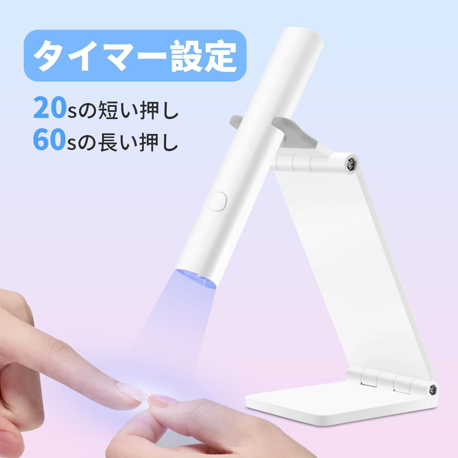 CGBE UV ネイルライト 、3W ペン型 ジェルネイルライトスタンド付き 、UV LEDライト ネイル レジン用 ライトプロ用 ミニ硬化ライト 全ジェル対応 2階段タイマー 充電式手足両用(白)