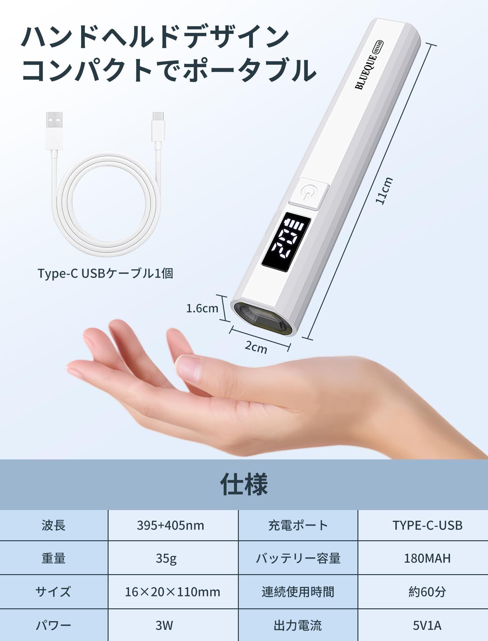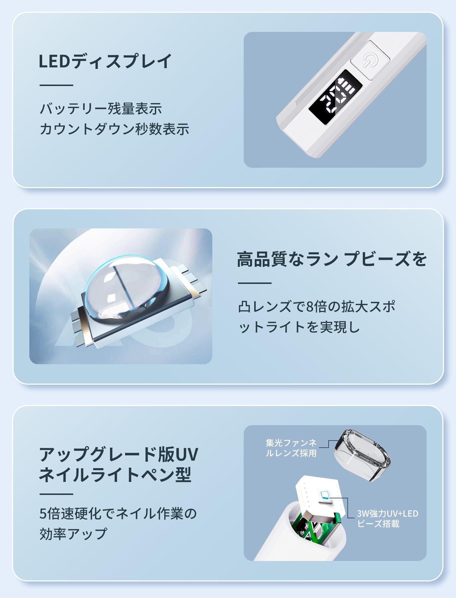 【2025最新】ネイルライト ハンディ USB充電式 ペン型 多機能 LEDディスプレイ 電量表示ディスプレイ カウントダウン秒数表示 uvライト レジン用 硬化ライト 速乾 2階段タイマー 手足両用 プロ&初心者用 ポータブル ミニネイルライト 持ち運び便利