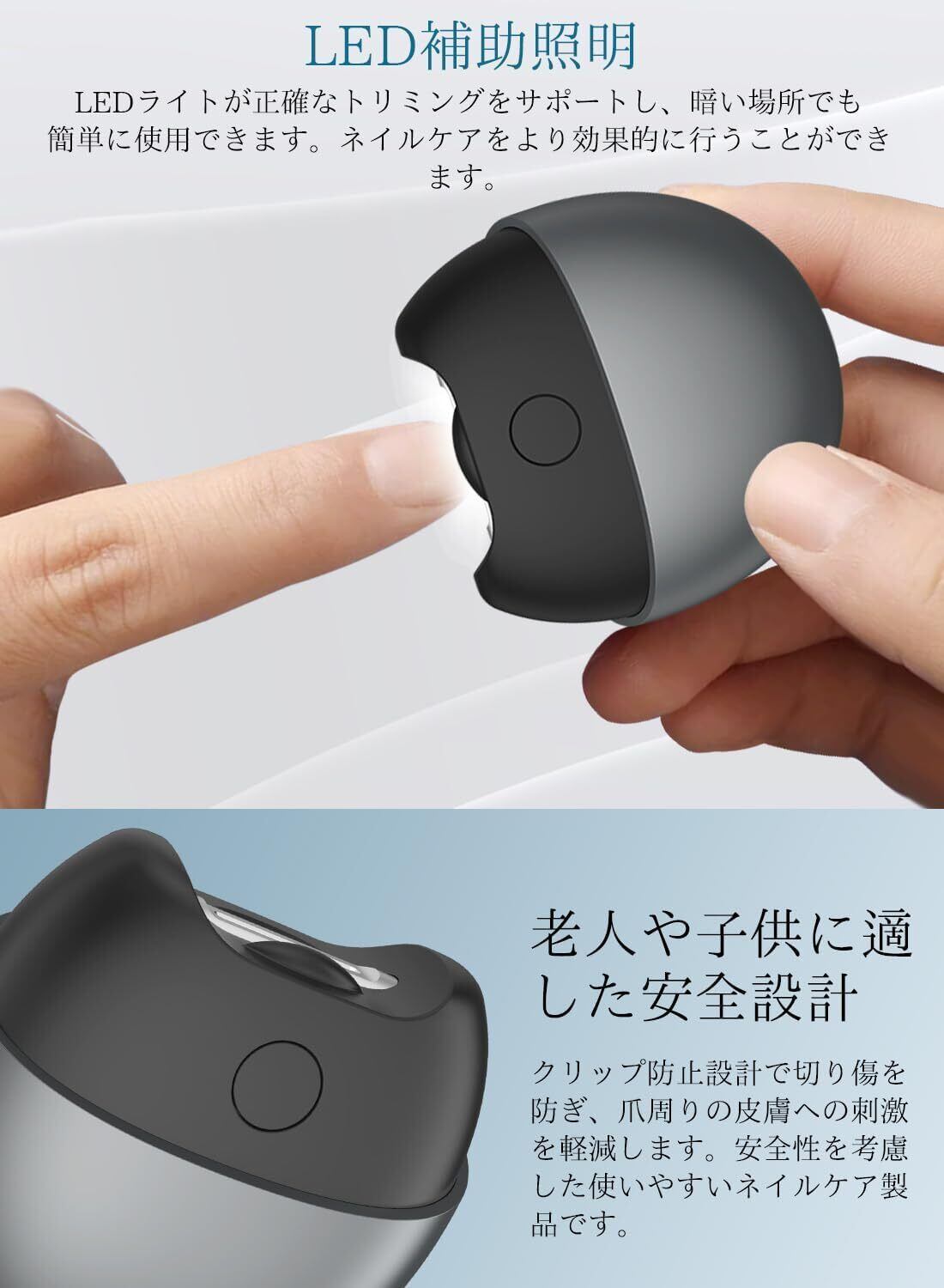 電動爪切り 電動爪やすり 電動つめきり 電動爪削り器 LEDライト 電動ネイルケア 爪とぎ Type-C充電式 可愛い 操作が簡単 爪傷防止 安全 低騒音 角質ケア 巻き爪 厚い爪 爪ケア 用 赤ちゃん/子供/大人/高齢者 安全スイッチが付き プレゼント (black)