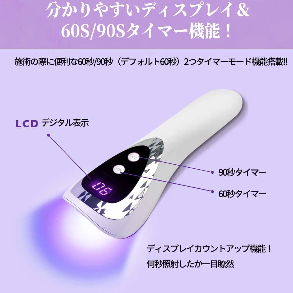 【UV+LED二重光源】UVとLEDライトの波長は365+405nmです。大きなライトに使われている球とは違い、LEDチップには樹脂を塗装しているので、目に優しい仕様になっております。見た目も操作性抜群のUV/LEDライトです。 レジンクラフトやジェルネイルで使え! UVネイルライトはUVレジン、UV硬化樹脂、UV接着剤、ジェルネイル用ジェル等幅広くご使用していただけます。 ※ご使用のUVレジンやジェルネイルようのジェルの種類により、硬化時間が異なる場合がございます。