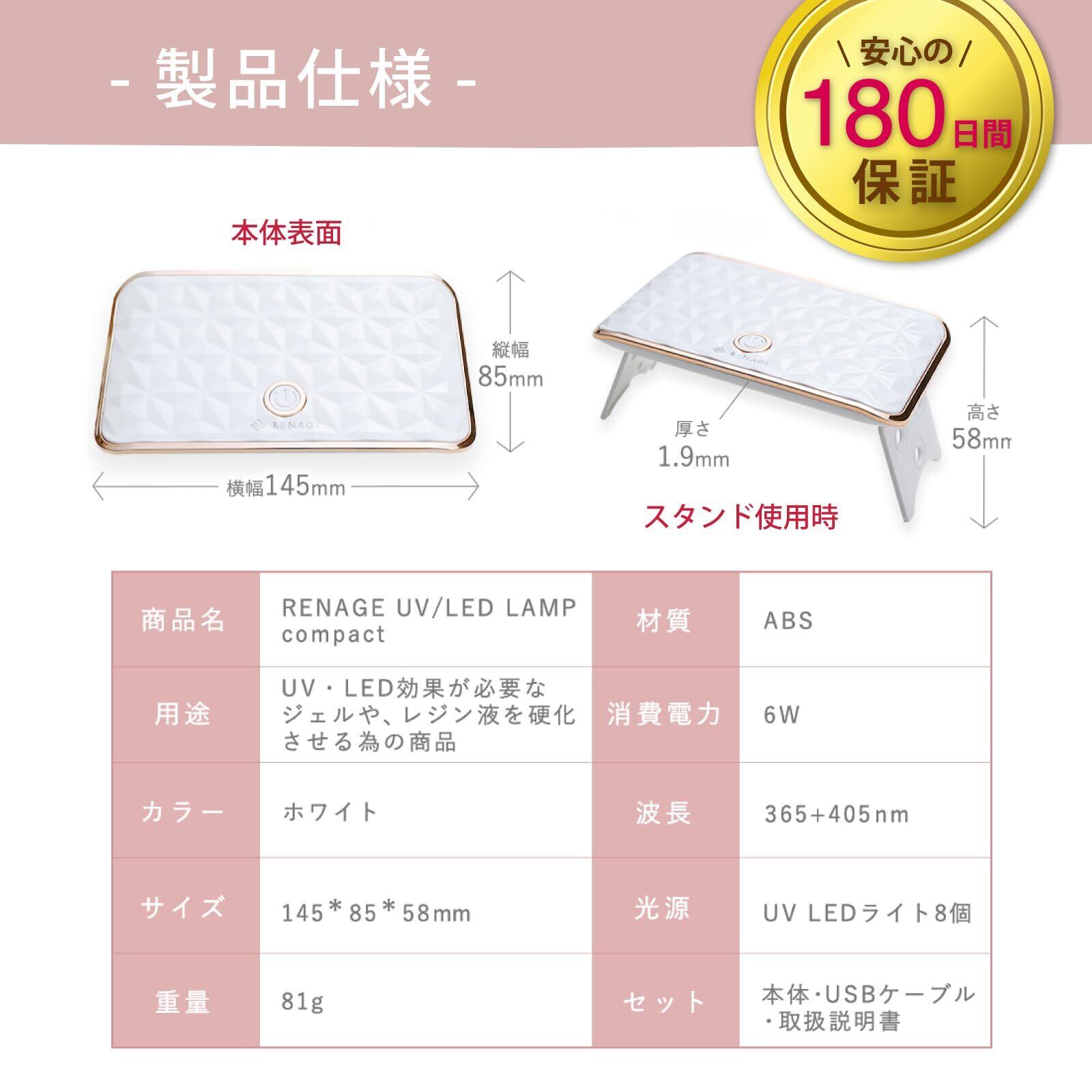 ジェルネイル ネイルライト UVライト レジン LEDライト RENAGE コンパクト 硬化ライト 折りたたみ式 USB給電タイプ タイマー機能 全ジェル対応 ネイルドライヤー 2Wayタイプ フルカラー取扱説明書
