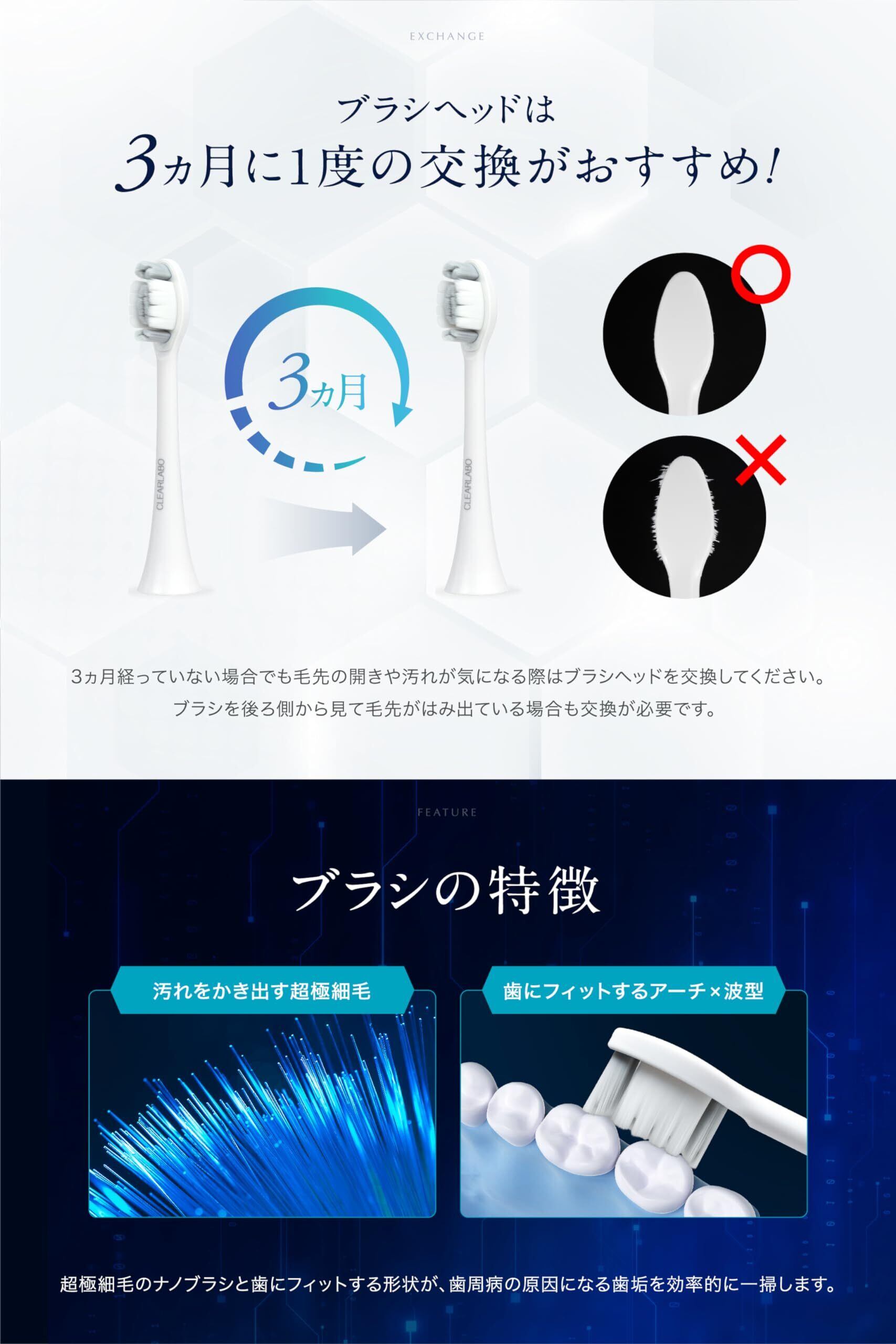 【交換】3ヵ月に1度の交換をお勧めいたします。※3ヵ月経っていない場合でも毛先の開きや汚れが気になる場合はブラシヘッドを交換してください。