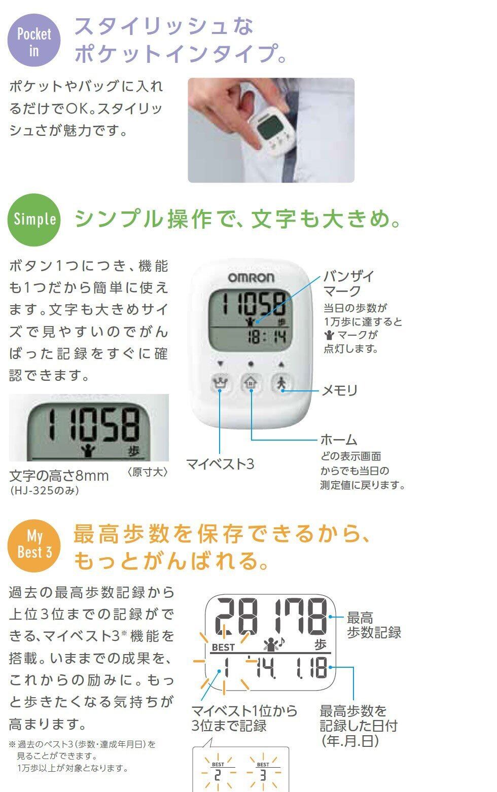 「オムロン 歩数計 HJ-325-B」は、毎日の健康をサポートするためにデザインされたアイテムです。運動記録を楽しく、かつシンプルに行えるため、充実したライフスタイルを実現する助けとなります!