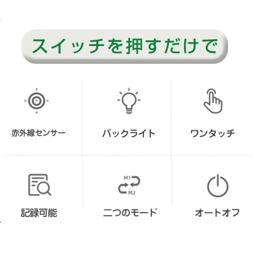 体温だけでなく、室温や表面温度の測定も可能です。直感的なワンタッチ操作で、誰でも簡単に扱えます。自宅はもちろん、職場や外出先でも非常に役立つアイテムです。