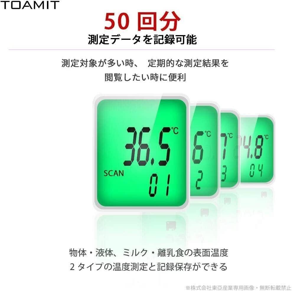 【メモリー機能&三色バックライト表示】測定した温度を最大50回まで自動的に記録します。三色で結果を表示、一目でわかりやすい