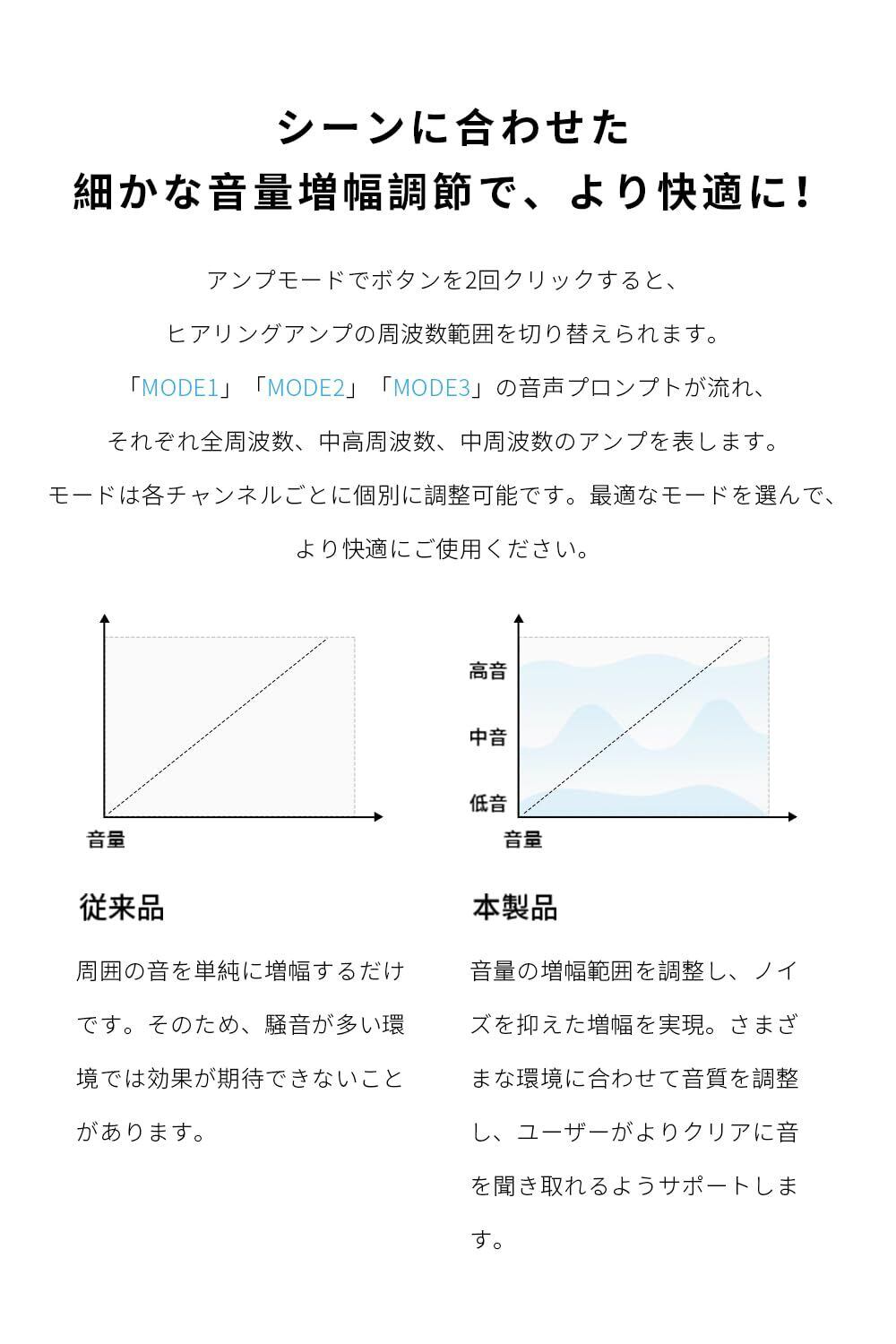 このイヤホン型集音器は、集音機能とBluetooth機能を兼ね備えており、使い勝手が抜群です。音声をしっかりと増幅し、会話や音楽を楽しむことができ、両耳でも片耳でも自由にお使いいただけます。