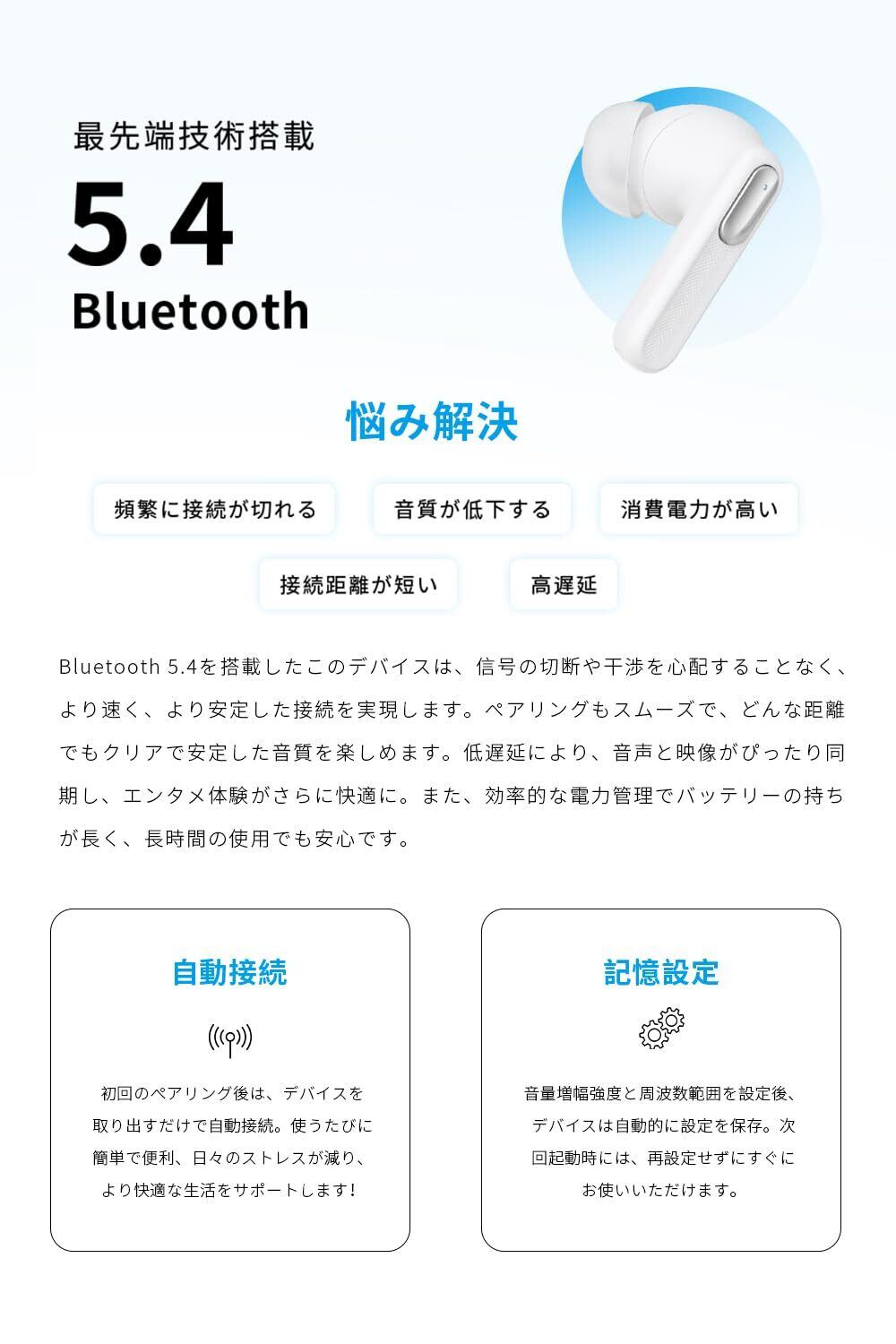 【1台2役高性能集音器と最先端Bluetooth技術の融合】当社の革新的なイヤホンは、集音器とBluetooth機能を1台に完璧に統合しており、多様なオーディオニーズに対応します。集音器としては、最新のデジタル信号処理技術を採用しています。この高度なチップは、あなたが聞きたい音を一つ一つ正確に認識し、クリアで大音量な音を出力します。人の声を360度全方位から捉え、ノイズを徹底的に除去しながら、相手の言葉を100%忠実に認識し、極めて自然な聴感を実現しました。また、この製品はBluetooth5.4を搭載しており、接続の安定性と高速性が大幅に向上しています。あなたのスマートフォンやタブレットのBluetoothをオンにし、「T15」という名前で検索してクリックするだけで、5秒以内に接続が完了します。接続成功後、音楽再生、通話、ビデオ視聴など、あらゆるオーディオコンテンツに対応しています。通話時には、応答や拒否の操作も簡単に行え、便利な使い勝手を提供します。