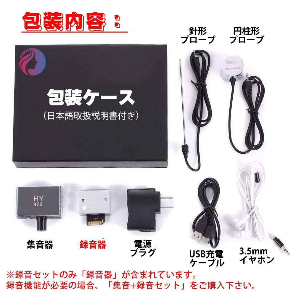 震災救援・情報収集・犯罪捜査・証拠を取る・機械の異常音・水道水漏れの検出などに最適。ご注意:●録音器マイクロSDカードは32GBまで対応です(32GB超えると録音できません)。●モード調節ボタンは必ず使用しているプローブ形状と一致の位置に調節して下さい。(モード調節ボタン左から右の順:①針形のプローブ超高感度・②円柱形プローブ標準感度・③円柱形プローブ超高感度) ●もし何か問題/不明点がございましたら、お気軽にご連絡ください。ご満足するように早速対応致します。