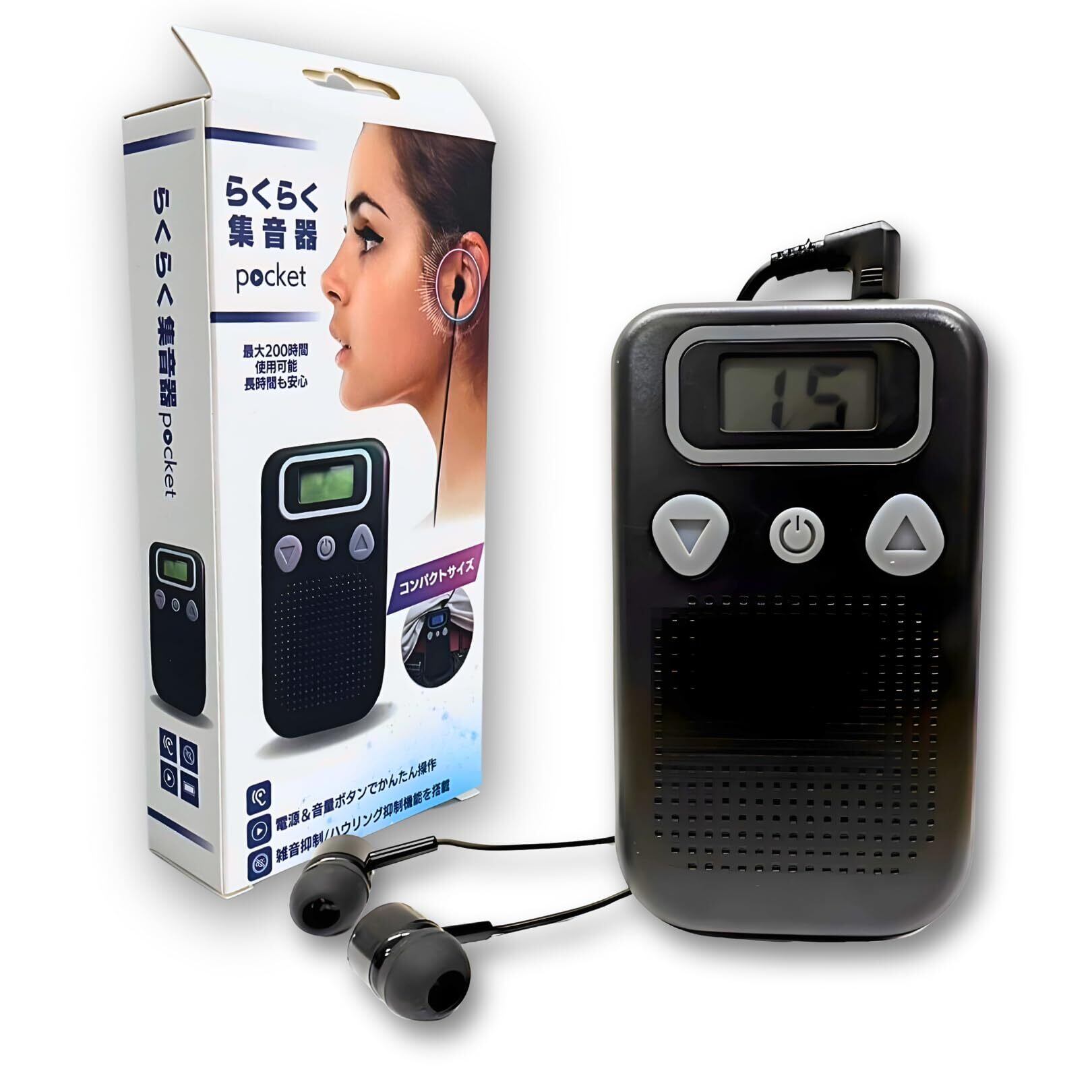 国内正規品 らくらく 集音器 高齢者 耳穴式 おすすめ 簡単操作 軽量 両用 ノイズキャンセリング 小型 持ち歩き 両耳 ポケット 15段階調節 持ち歩き 両耳 ポケット 日本語取扱説明書 プレゼント 敬老の日 (有線 電池式)(PHA01-BK)