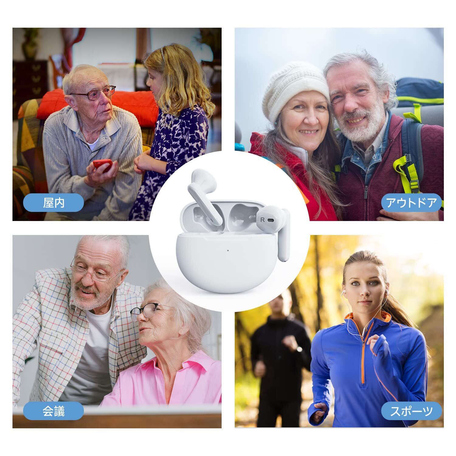 充電式集音器 高齢者集音器しゅうおんき 高感度集音器 音声拡聴器 イヤホンタイプ ヘッドセット外観 耳穴式 左右両用耳ワイヤレス USB充電式軽量 コンパクト 簡単なダッチボタンノイズキャンセリング 音質良い デザインおしゃれ
