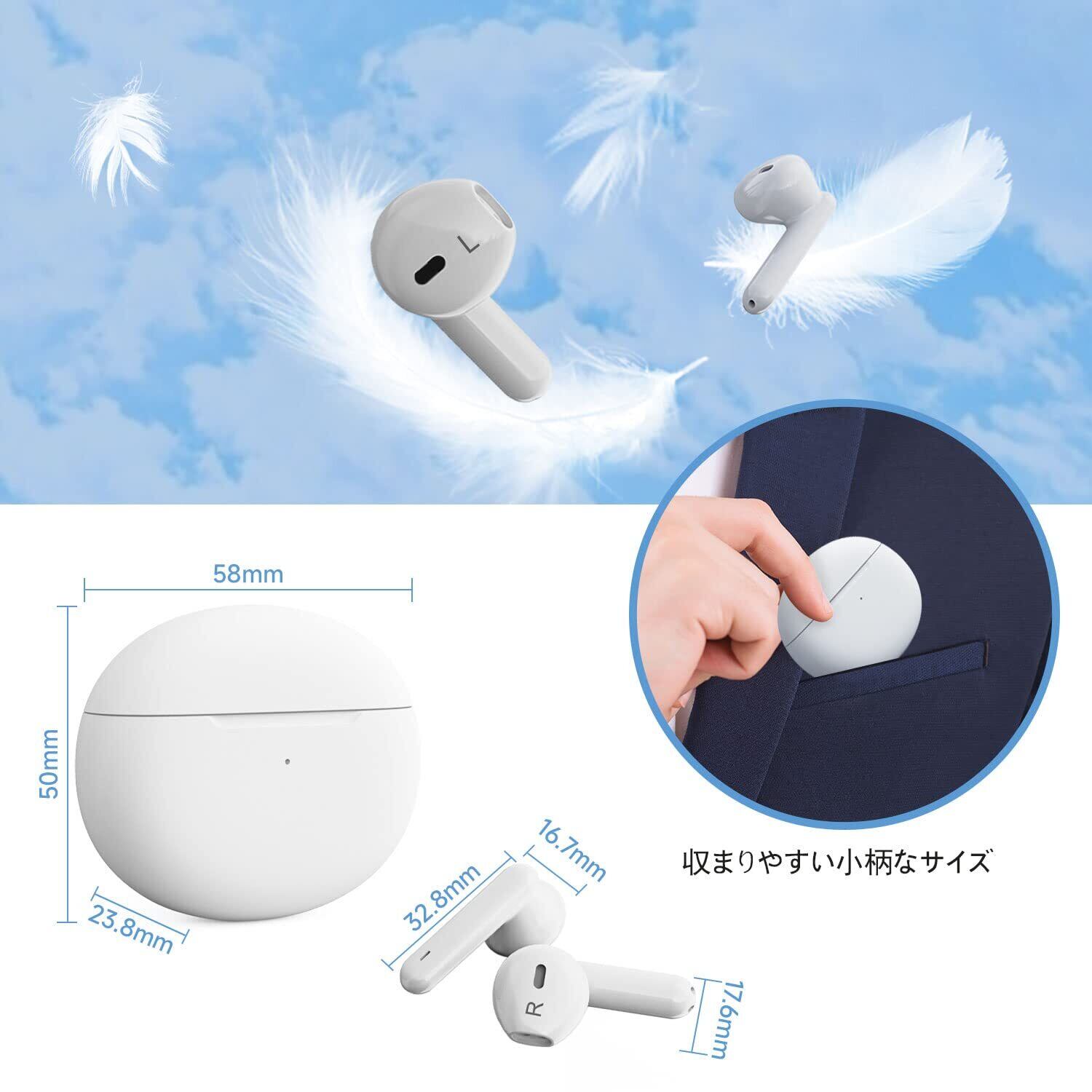 耳穴式で非常に軽量なため、長時間の使用でも疲れを感じにくく、普段の生活に馴染むデザインです。おしゃれな外観で、さりげなくお使いいただけます。