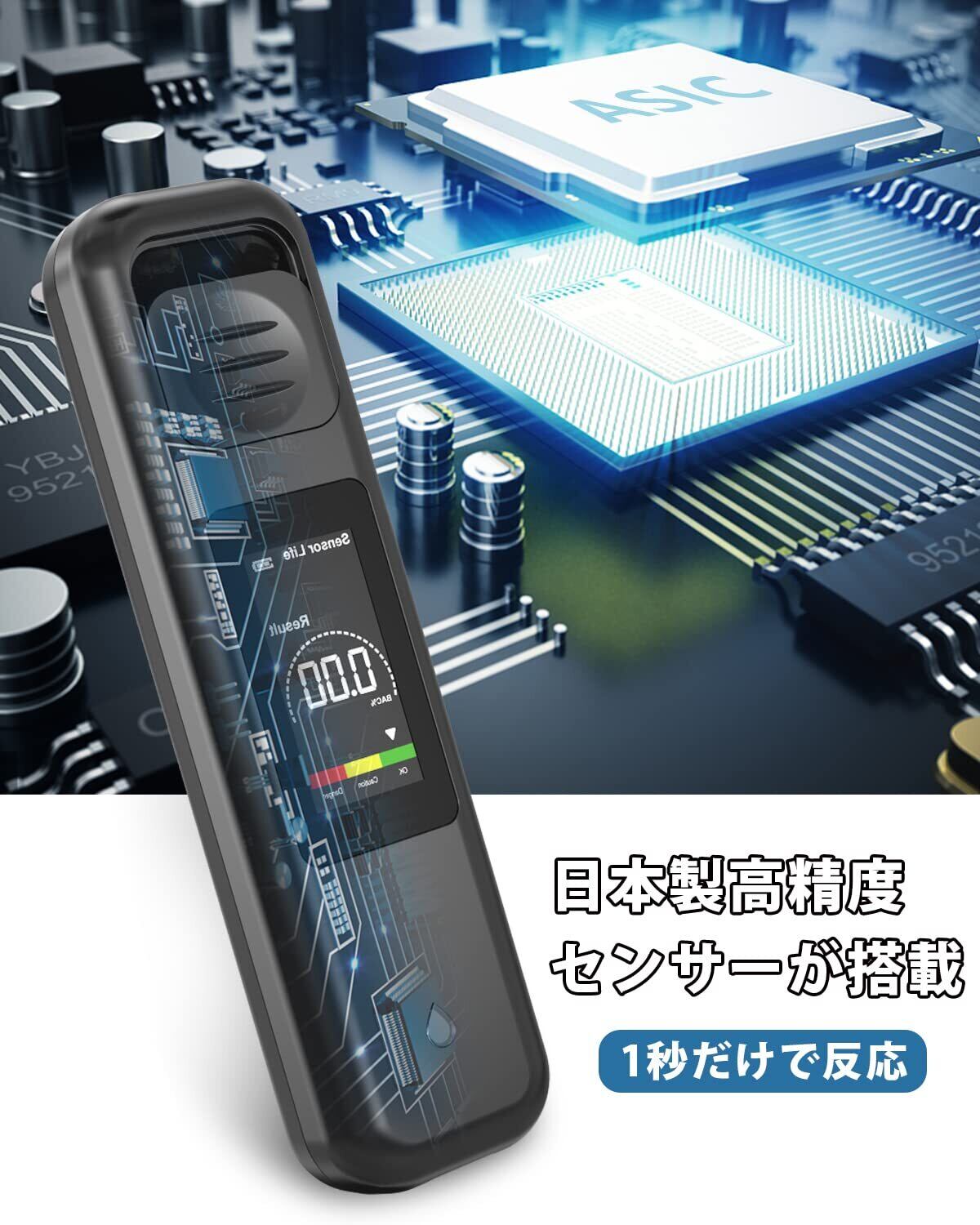 最新の日本製センサーを採用しており、正確なアルコール濃度を測定可能です。業務用にも対応しており、飲酒チェッカーとしての信頼性が高い商品です。二日酔いの心配も軽減します!