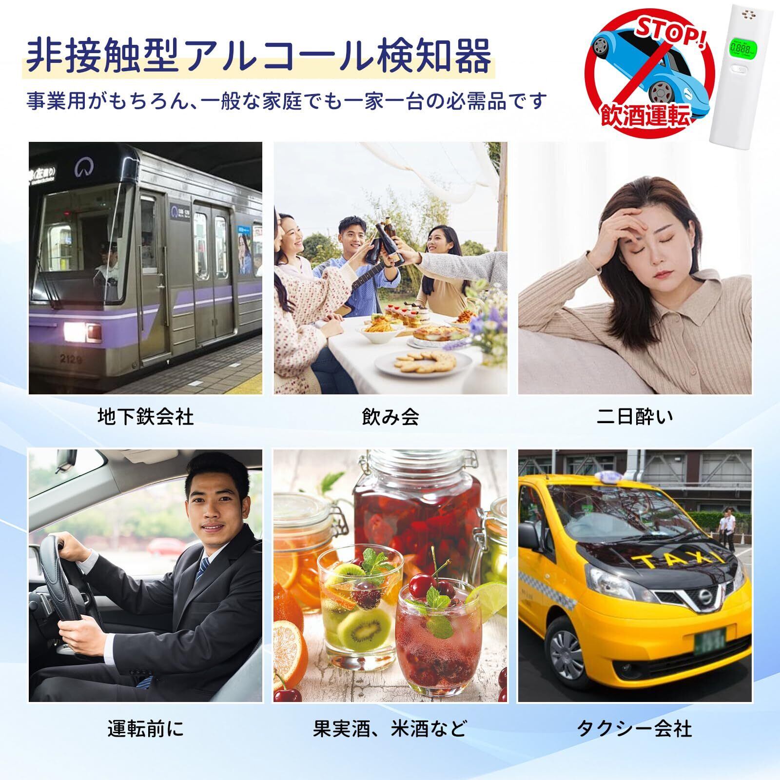 【非接触式・アルコール検知器協議会認証済み】本アルコールチェッカーは息を吹きかけるだけで呼気中のアルコール濃度を測定できます。道路交通法の改正により、安全運転管理者による運転者のアルコールチェックを確認し、その記録の保存することが義務付けられました。