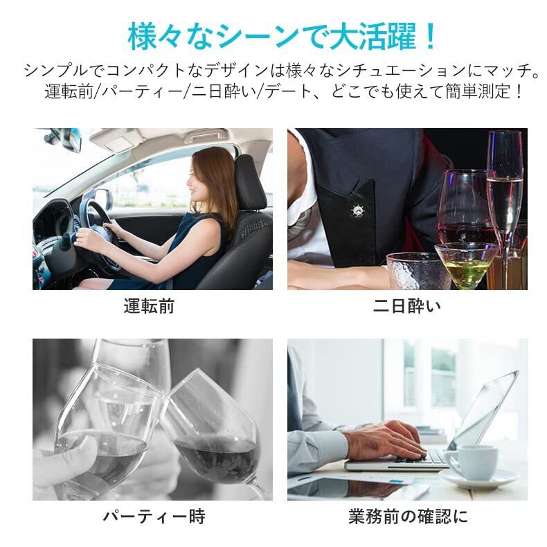 USB充電式で、軽量設計のため、ポケットやバッグに収まりやすく、いつでもどこでも手軽に使用できます。外出先や旅行先でも、自分のアルコールレベルを管理することが可能です。