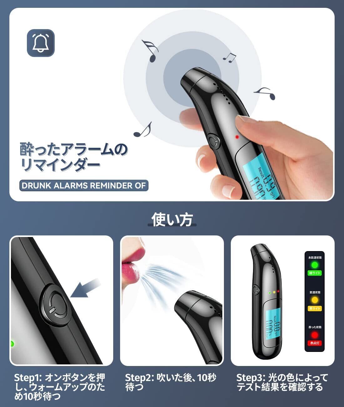 【適用範囲が広い・一年・B2B対応】運送業者様・旅客業者様の日本製アルコールチェッカーの使用が義務化されます。本アルコール検知器は事業用がもちろん、一般な家庭でも一家一台の必需品です。の飲酒チェッカーは安心な1年付きます。使用中、製品の使用について何か不明なところが御座いましたら、ご心配なさらないで注文履歴より弊店までご連絡ください。B2Bも提供できます。