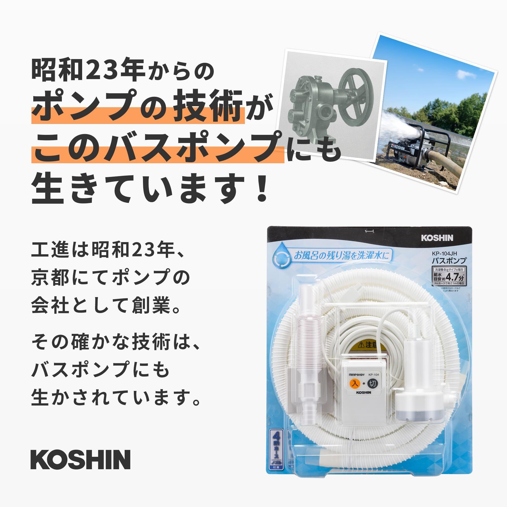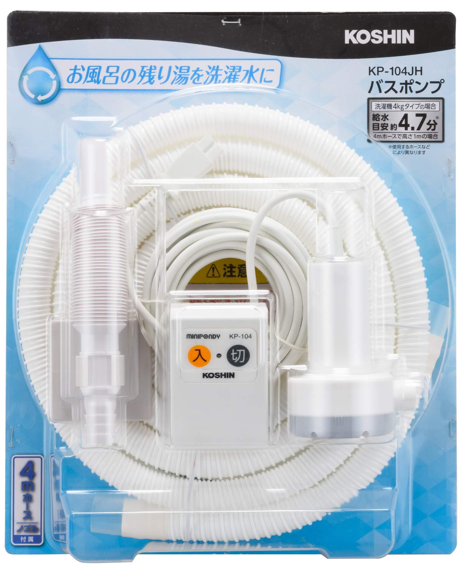 工進(KOSHIN) 家庭用バスポンプ AC-100V KP-104JH 4m ホース付 風呂 残り湯 洗濯機 最大吐出量 11L/分 (付属4mホース時)