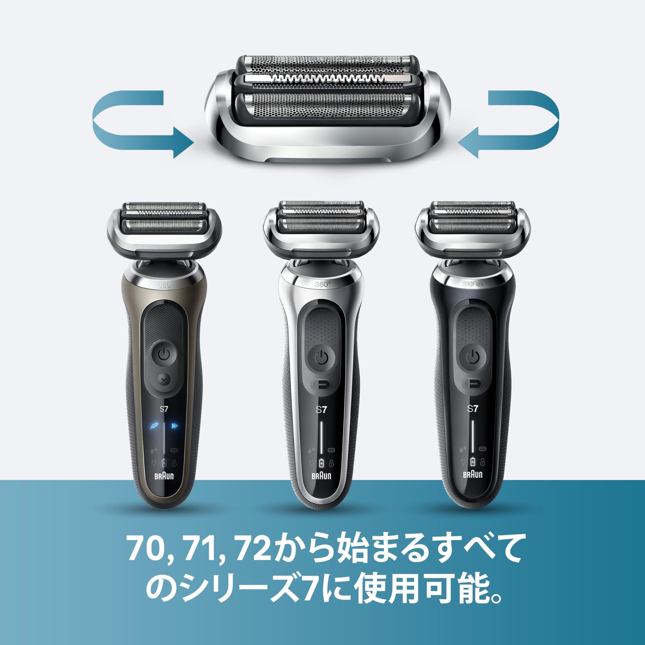 ブラウン新密着シリーズ7専用替刃。70-, 71-, 72-から始まるすべてのブラウンシリーズ7の交換用替刃としてお使いいただけます。