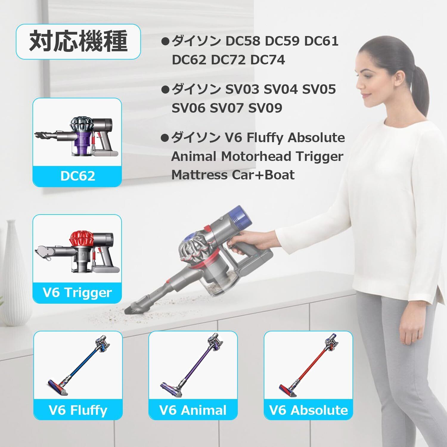 DC62、DC58、DC59、DC61、DC74、HH08、SV03、SV04、SV05、SV06、SV07、SV09など、さまざまなダイソンモデルに対応しています。これにより、あなたの掃除機にぴったりのバッテリーを見つけることができます。