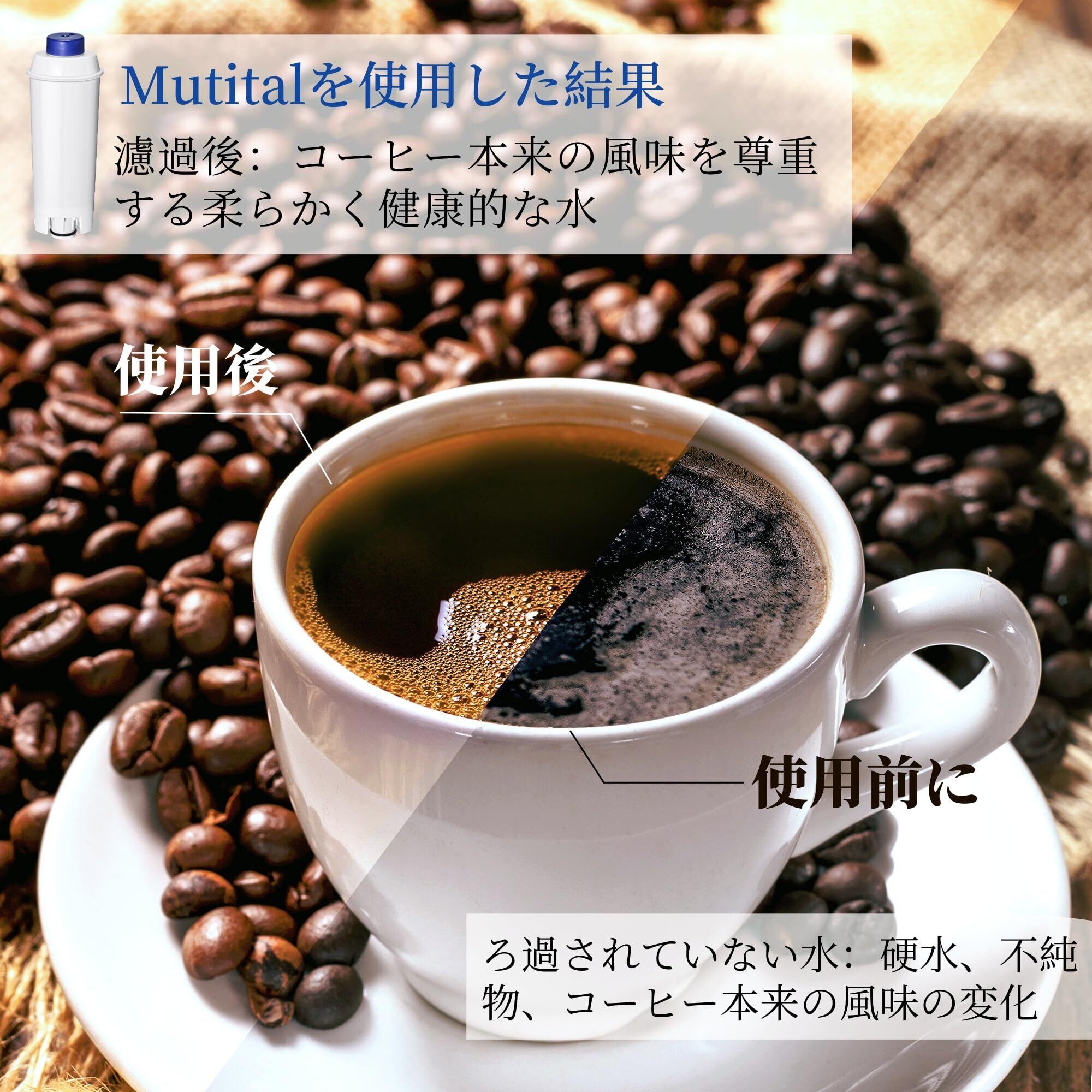 ️【天然素材使用】Mutitalフィルターには、天然のココナッツ殻活性炭を採用。食品グレードの活性炭が水の硬度を低減し、コーヒー・お茶・その他の飲み物の味を向上させます。