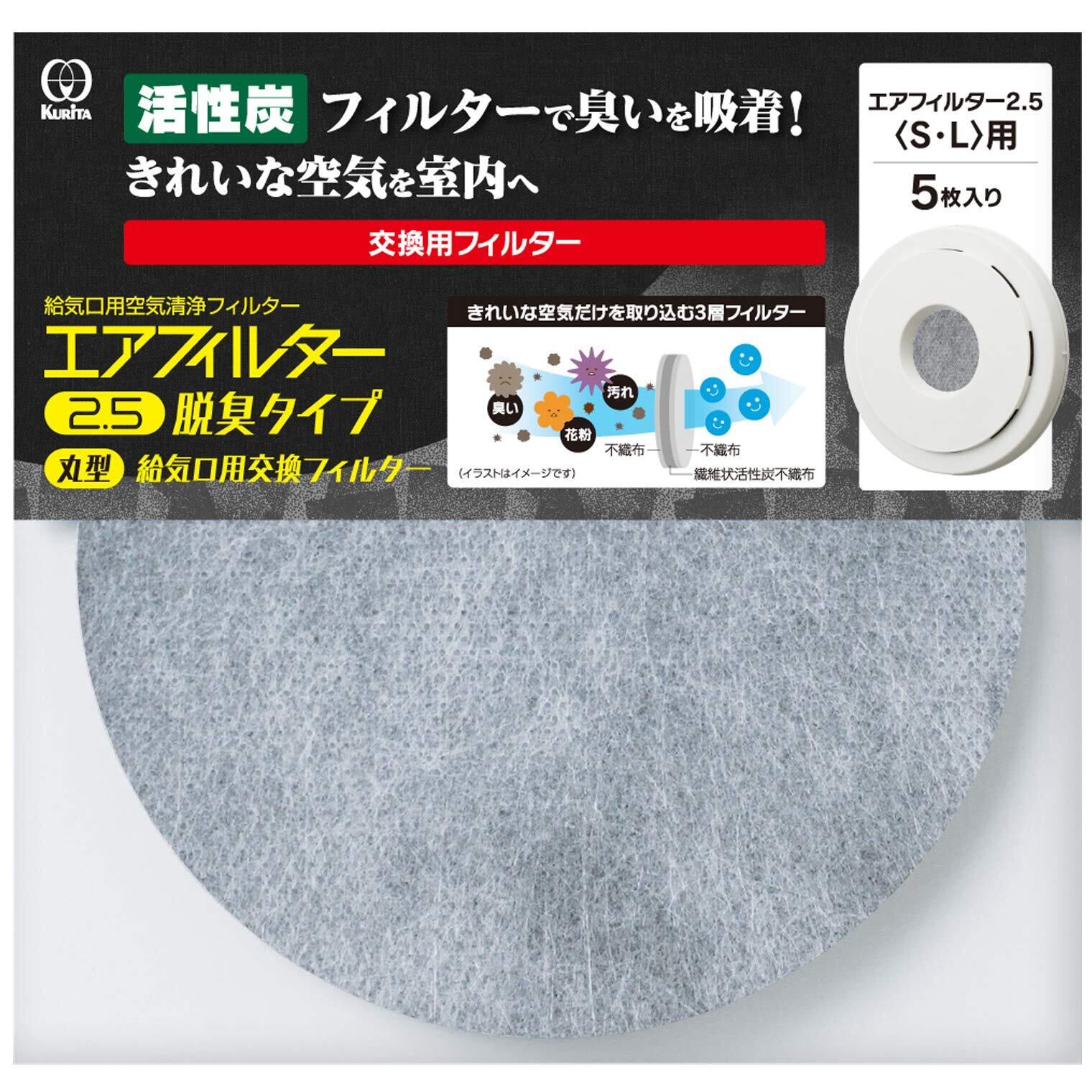 クリタック(Kurita) エアフィルター2.5 脱臭タイプ 丸型給気口用交換フィルター5枚入 日本製 AIF-5073 グレー