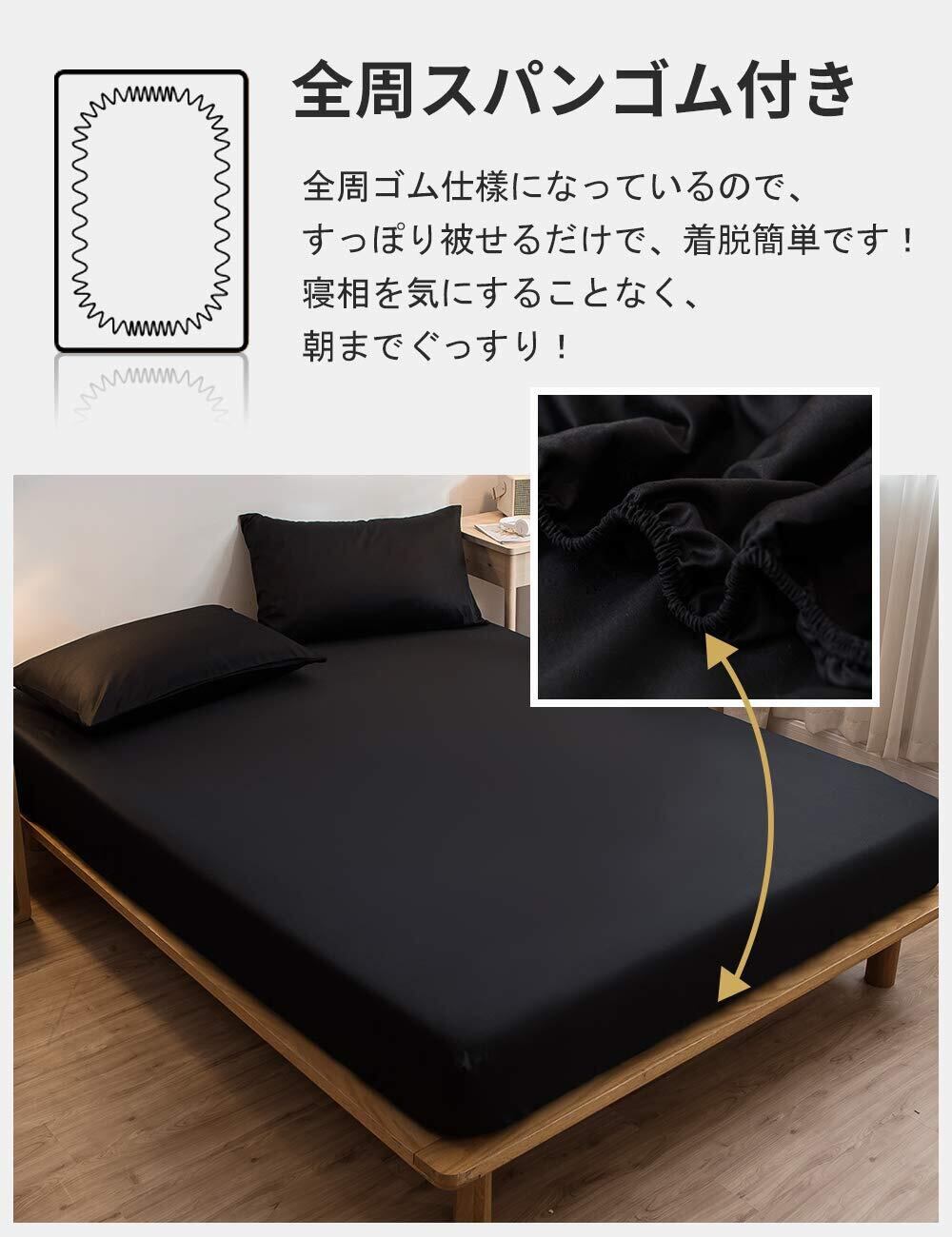 ボックスシーツ 吸水速乾 シーツ ベッドカバー マットレスカバー 抗菌・防臭 (シングル・100×200cm ブラック)厚さ5 cm~30 cmのマットレスに適しています