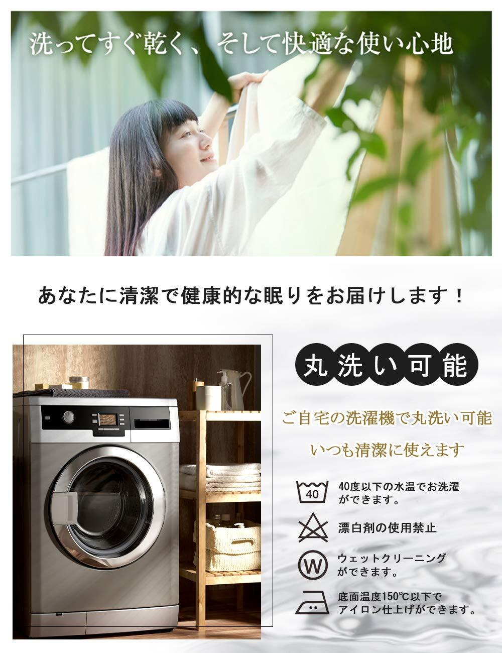 家庭用洗濯機で丸洗いが可能なため、手間いらずで簡単に清潔に保つことができます。忙しい方にもぴったりのアイテムで、いつでもフレッシュな寝具でおやすみいただけます。