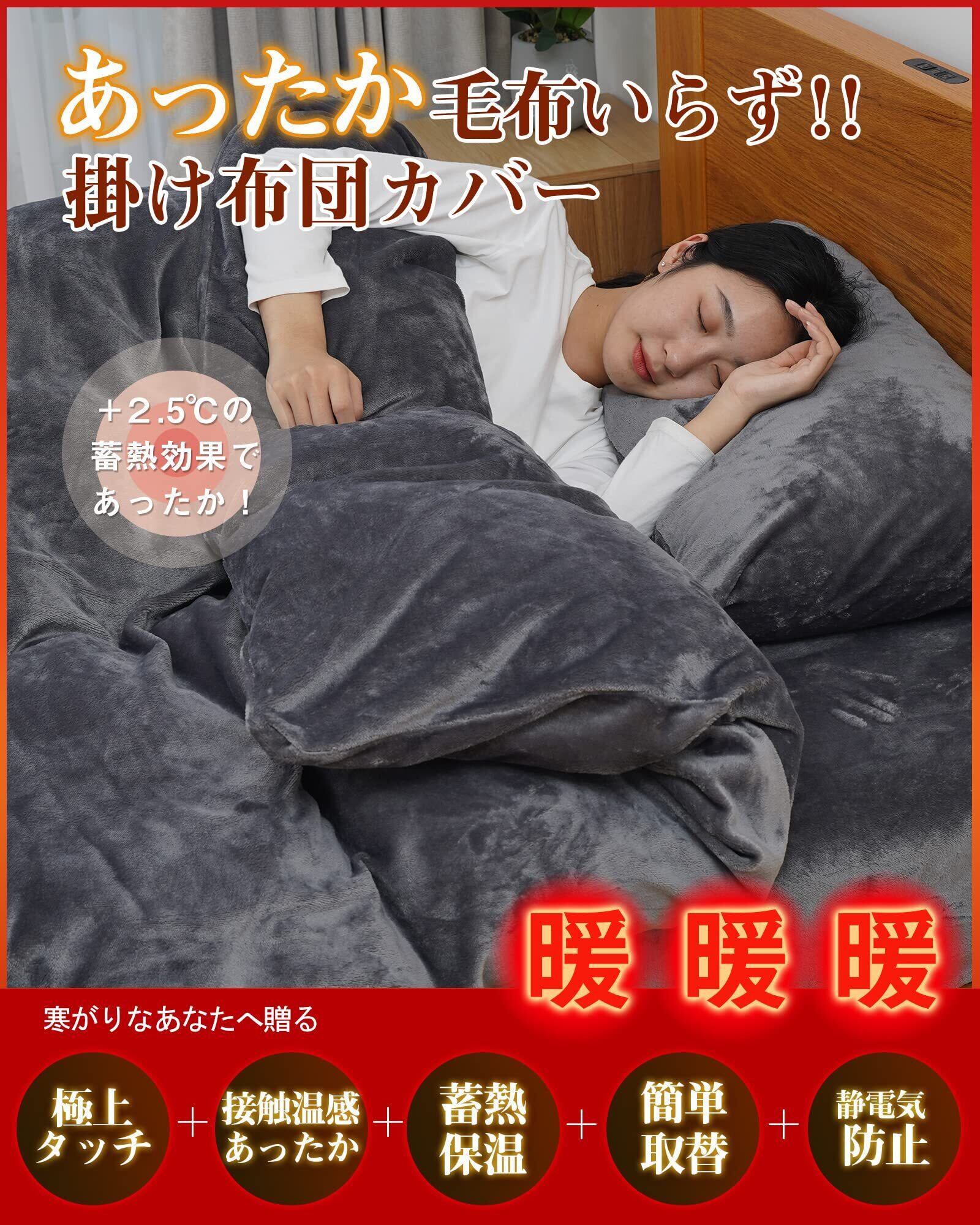 『プラス2.5℃&極上タッチ』 暖かい 掛け布団カバー シングル 冬 あったか 厚手 ふわふわ 蓄熱保温 布団カバー 毛布いらず 掛けふとんカバー 掛けカバー 二つファスナー スナップボタン 静電気防止 抗菌防臭 (シングル グレー)