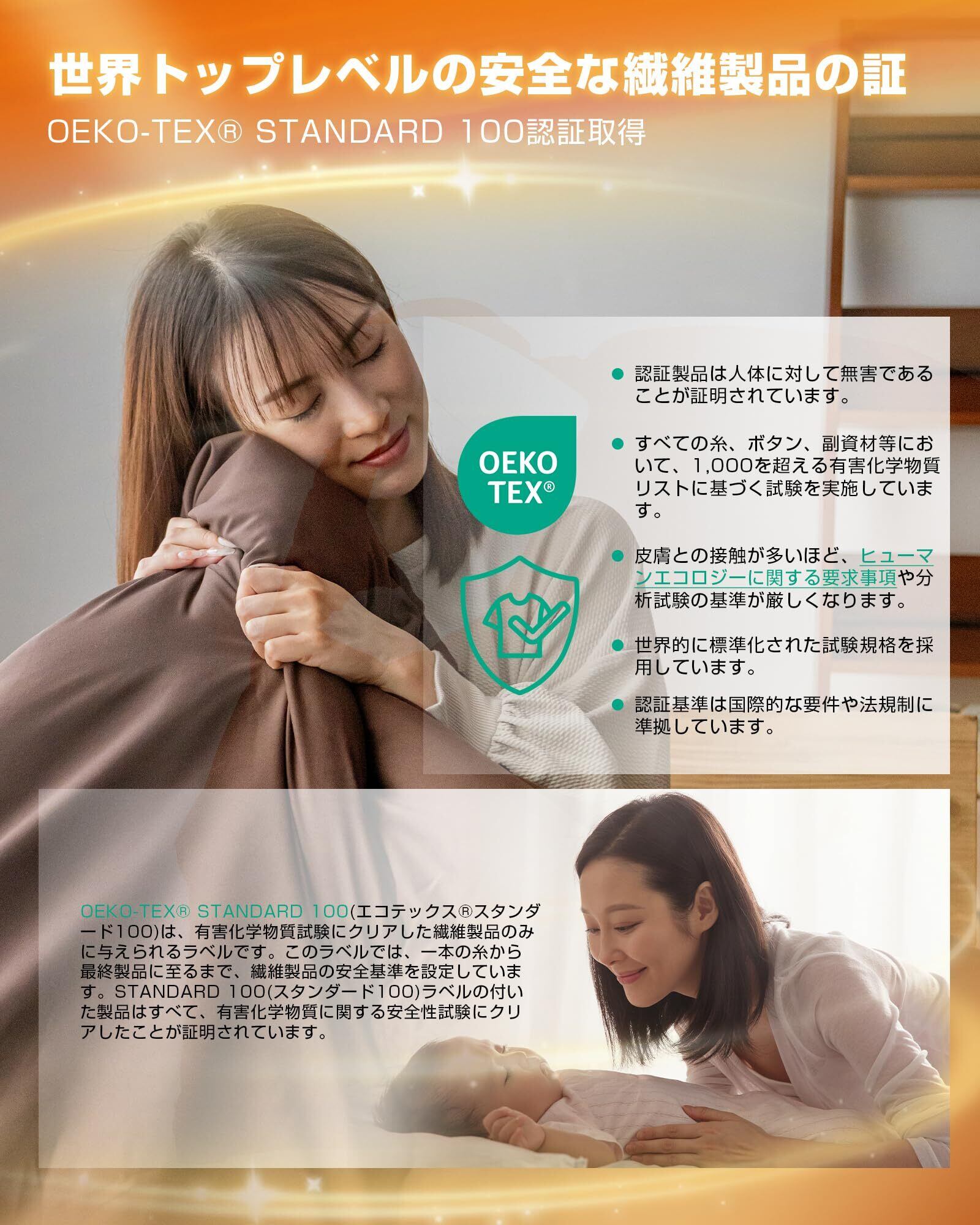 【抗菌・防臭加工】「防ダニ機能」を持っているので、細菌の繁殖を抑制して嫌な臭いを防ぎ、ダニを寄せ付けません。長く使えて小さいお子様にも安心です。