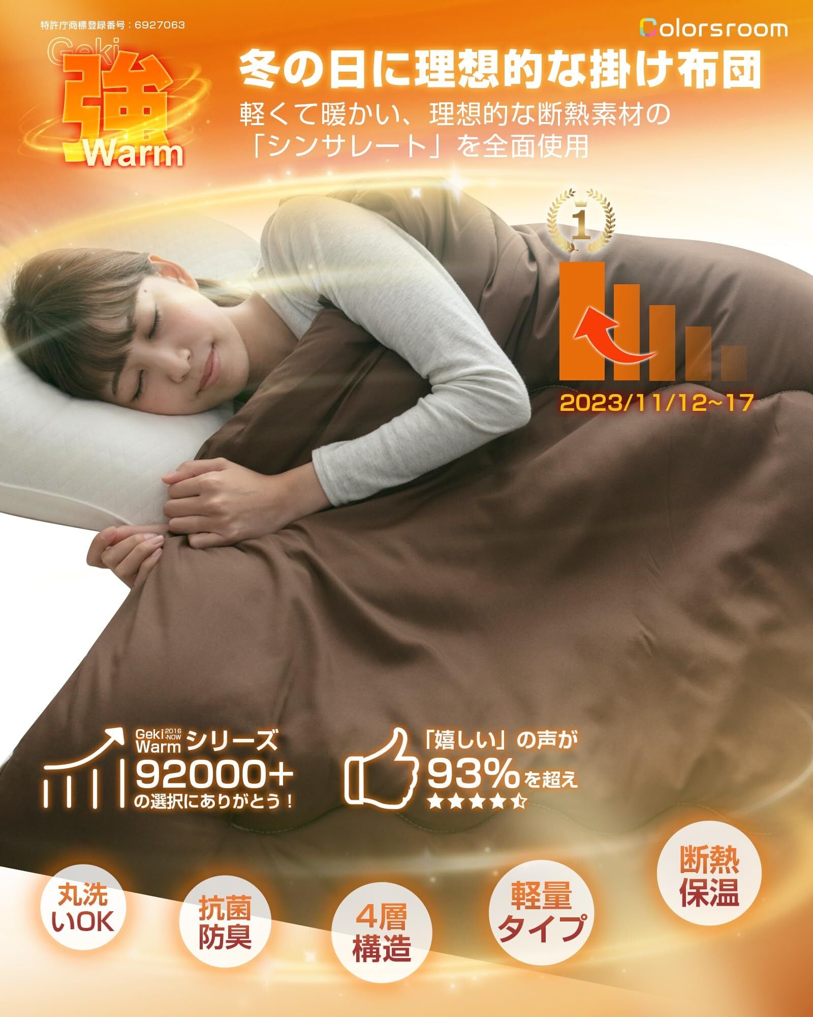 Colorsroomの掛け布団は、寒い冬にぴったりな高機能アイテムです。優れた保温性と快適さを兼ね備え、あなたの睡眠をサポートします!