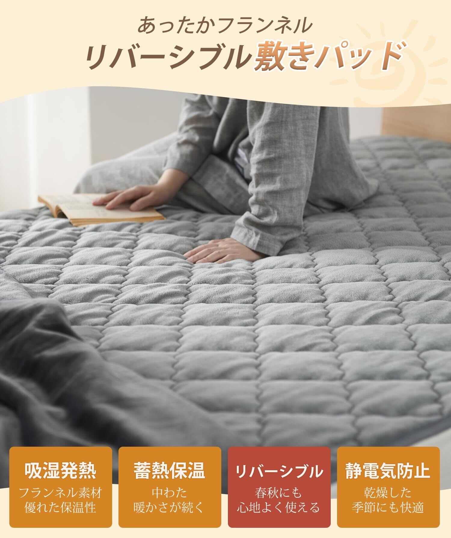 ・秋冬に大活躍のフランネル敷きパッドです。マイクロファイバー素材を使用しており、優しい肌触りと優れた保温性を兼ね備えています。これで冬を暖かく過ごしましょう!