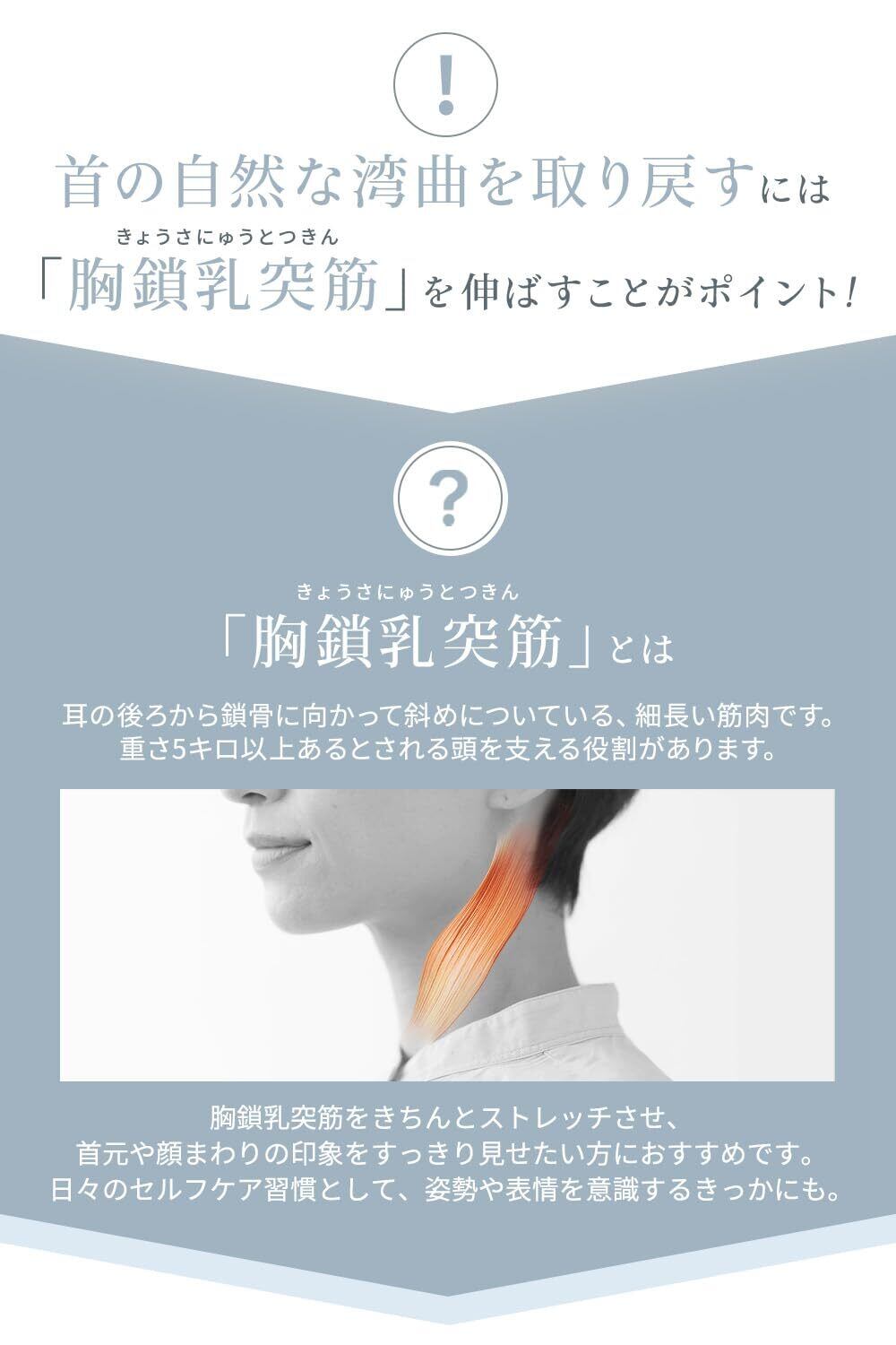 この首まくらは、やわらかい素材ながらもしっかりとしたサポートを提供します。使用者の首の形にフィットし、自然な姿勢を保ちながらリラックスできる設計になっています。また、ストレッチモデルのデザインは、より効果的に筋肉を解放します。