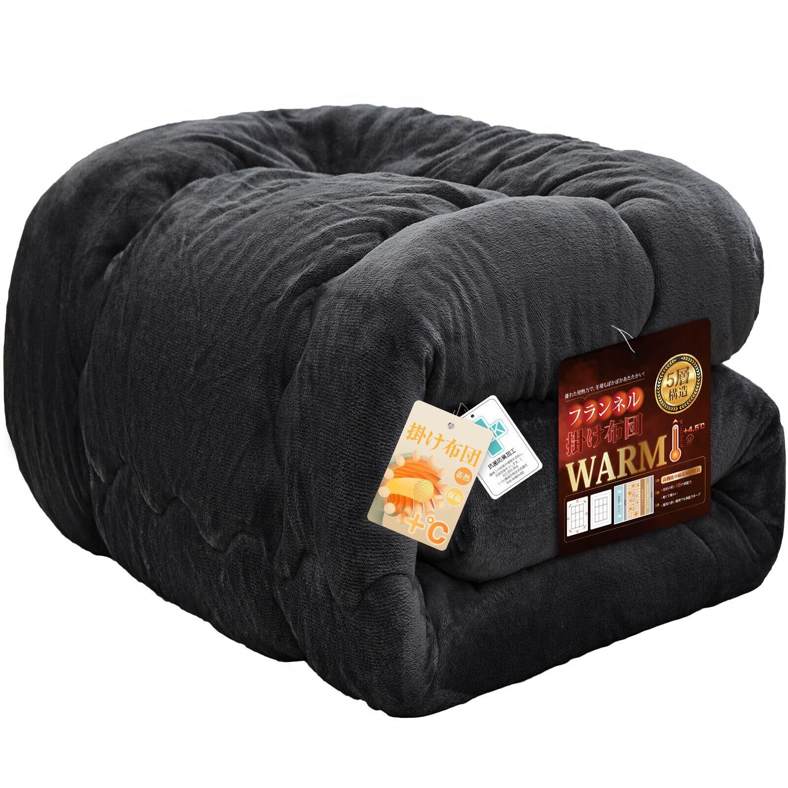Housecover 掛け布団 シングル 冬用 暖かい 5層構造 フランネル あったか 吸湿発熱わた 蓄熱 極厚 ボリューム 高保温 真冬 毛布の代わり 肌触り 布団 洗える 抗菌防臭防ダニ 静電防止 ふわふわ 掛布団 掛けふとん ブラック 150×210cm