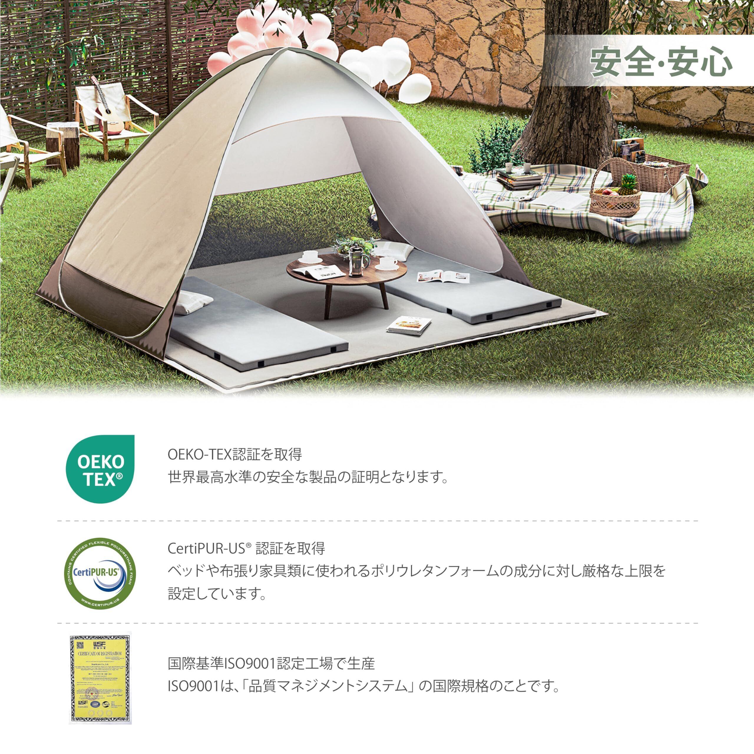 特殊な防水加工が施されているため、万が一の湿気や水分からマットレスを守ります。車中泊やテント泊でも安心してご使用いただけます。