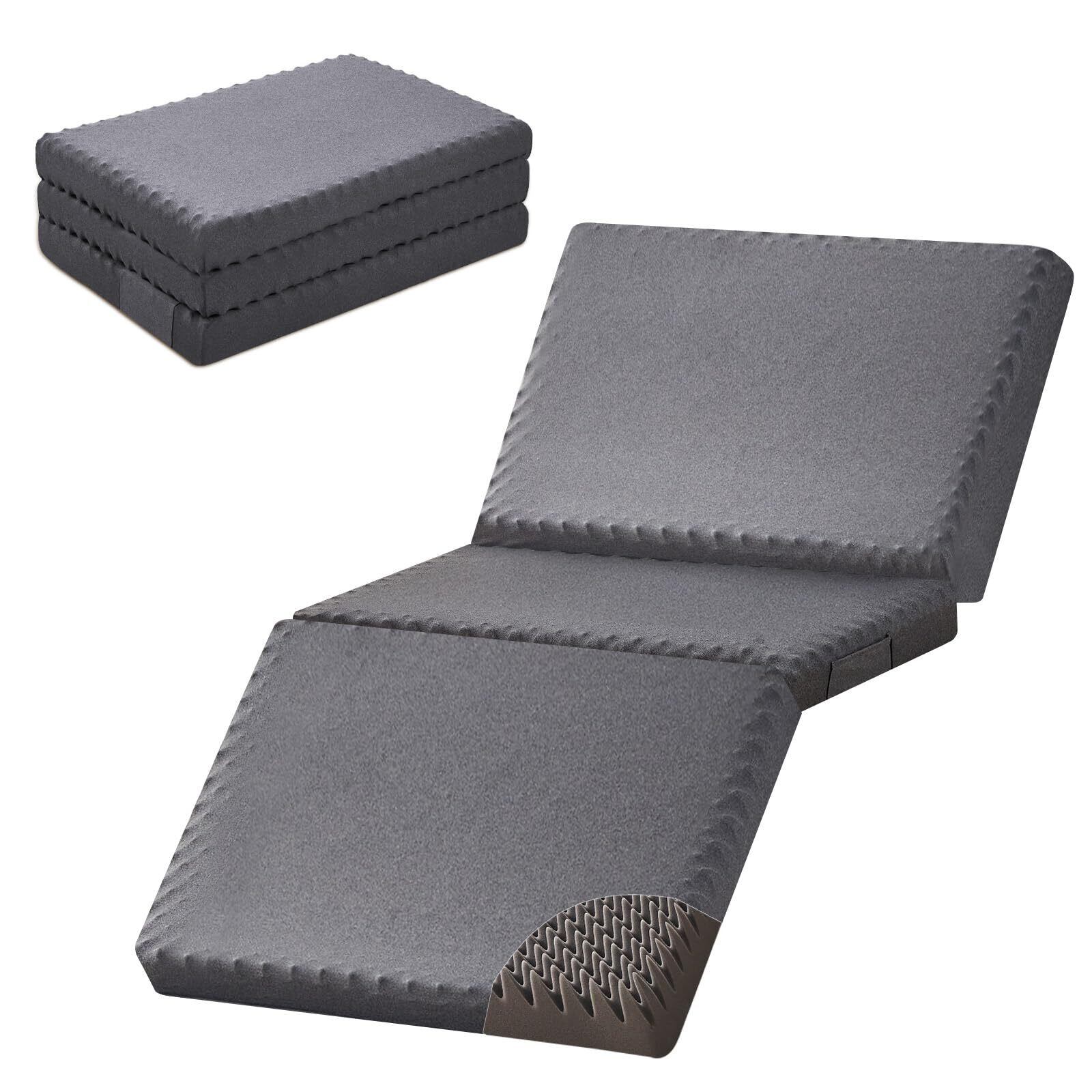 \【◆マットレス シングル 3つ折り 高反発 25D高密度 凹凸&滑り止め加工 防ダニ防臭 体圧分散 厚さ8cm 97x195 cm ダークグレー 楽暮屋 | 快適な睡眠を実現する高反発マットレス!】/