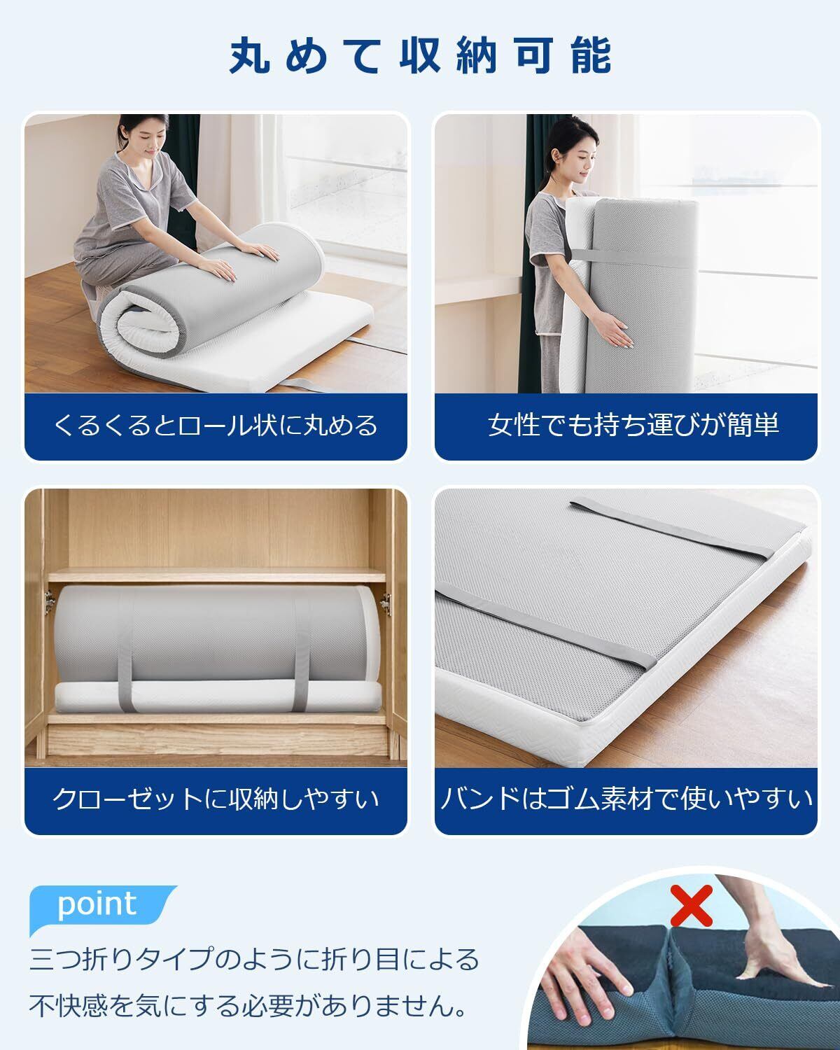 【暮らしを便利に】リビングや、寝室はもちろん、さまざまな場所で使用できる睡眠マットレスです。ベッドや敷布団に重ねても、畳・床に直置きしても使用可能ですので、古くなったマットレスを復活、また来客時にはとても便利です。