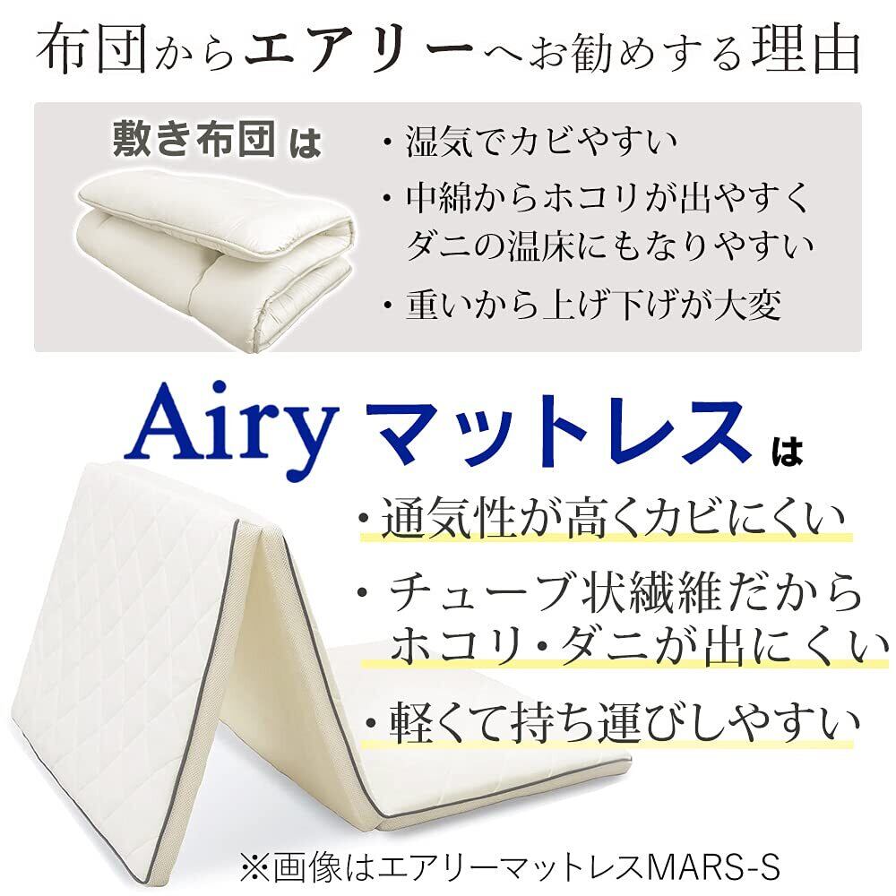 アイリスオーヤマ エアリーマットレス プラス ハードタイプ 三つ折り 高反発 かため 厚さ5cm 抗菌 防臭 丸ごと洗える ホコリ出にくい ダニ対策 通年 シングル APMH-S