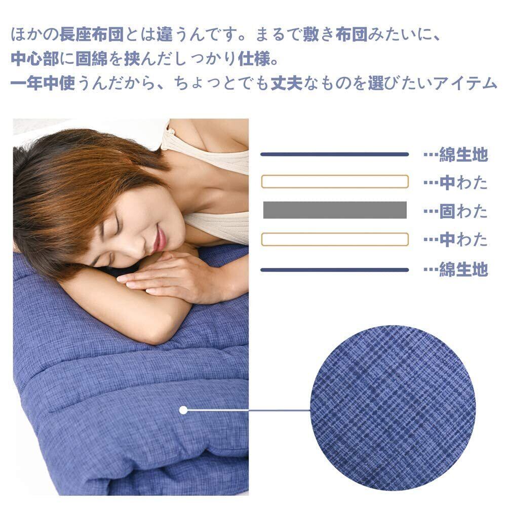 【綿100%の敷きふとん】贅沢な天然綿素材を100%採用しており、化学繊維と比べるとはるかにやさしい肌触り持っております。綿は吸水性にも優れ、吸収した水分は外に発散されるので、通気性が良く、シーズンを通して快適に使うことができます。綿糸を独特なしじら織りに織り上げ、表面が波状になっており、汗をかいた肌で触れてもベタつかず、肌離れが良いのが特長。こうした綿しじらは紺色の無地と取り合わせられ、見た目に落ち着いた高級感が出されます。