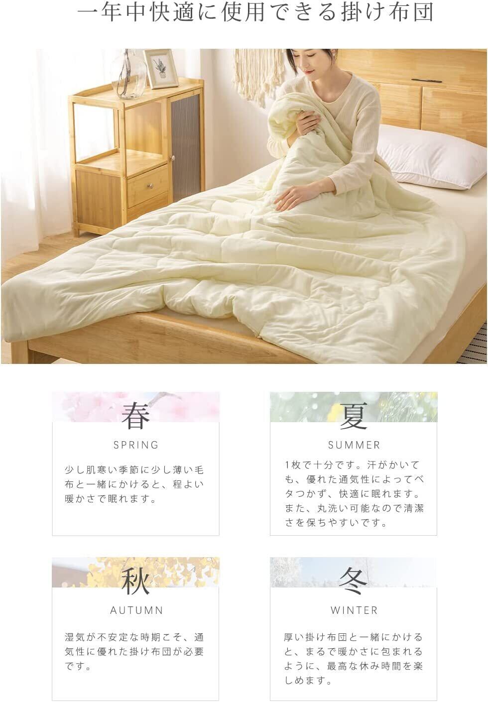 【究極の肌触り】この肌掛け布団は、ポリエステル100%の生地で作られており、肌に優しくフィットします。まるで軽い羽毛のような感触が特徴で、毎晩の睡眠を快適なものに変えてくれます。