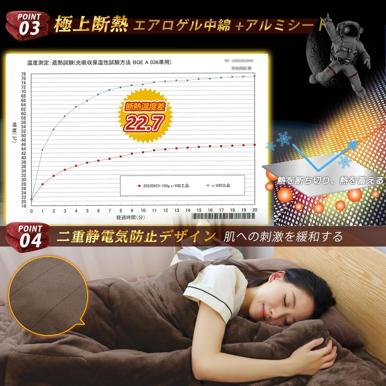 帝人TEIJIN中わた 掛け布団 シングル【エアロゲル+グラフェン】7層構造 極厚極上暖 極上断熱 遠赤外線 吸湿発熱 二重静電気防止 抗菌防臭 防ダニ 厚手 キルトケット もうふ フランネル 冬 あったか 接触温感 洗える ブラウン 140x200cm