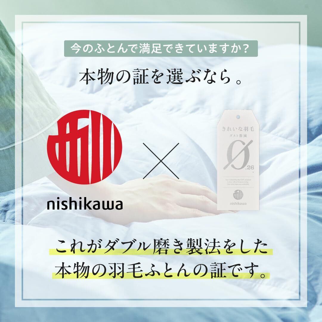 nishikawaのセブンデイズ羽毛布団は、厳しい基準をクリアし、ダウンパワー350の高い保温性を実現しています。ダウン85%を配合し、冬の寒さからしっかりと体を守ります。心地よい温かさと快適な眠りをお楽しみください。