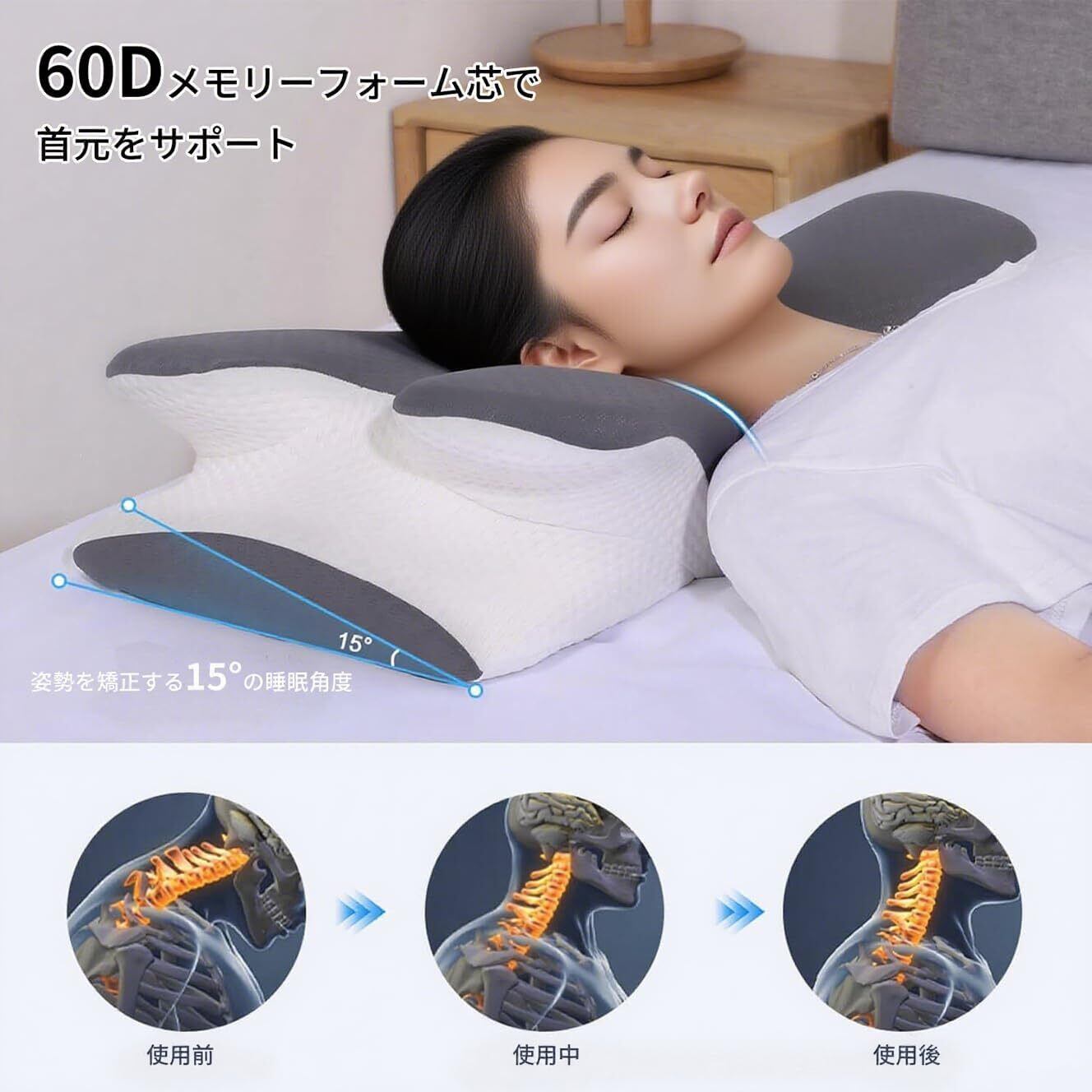 TOUMON【日本企業販売】 枕 首が痛くならない 人体工学デザイン 睡眠 まくら 低反発枕 よく 眠れる 安眠枕 高 横向き寝 快眠枕 pillow 立体構造 硬め 洗える枕カバー 誕生日/クリスマス プレゼント