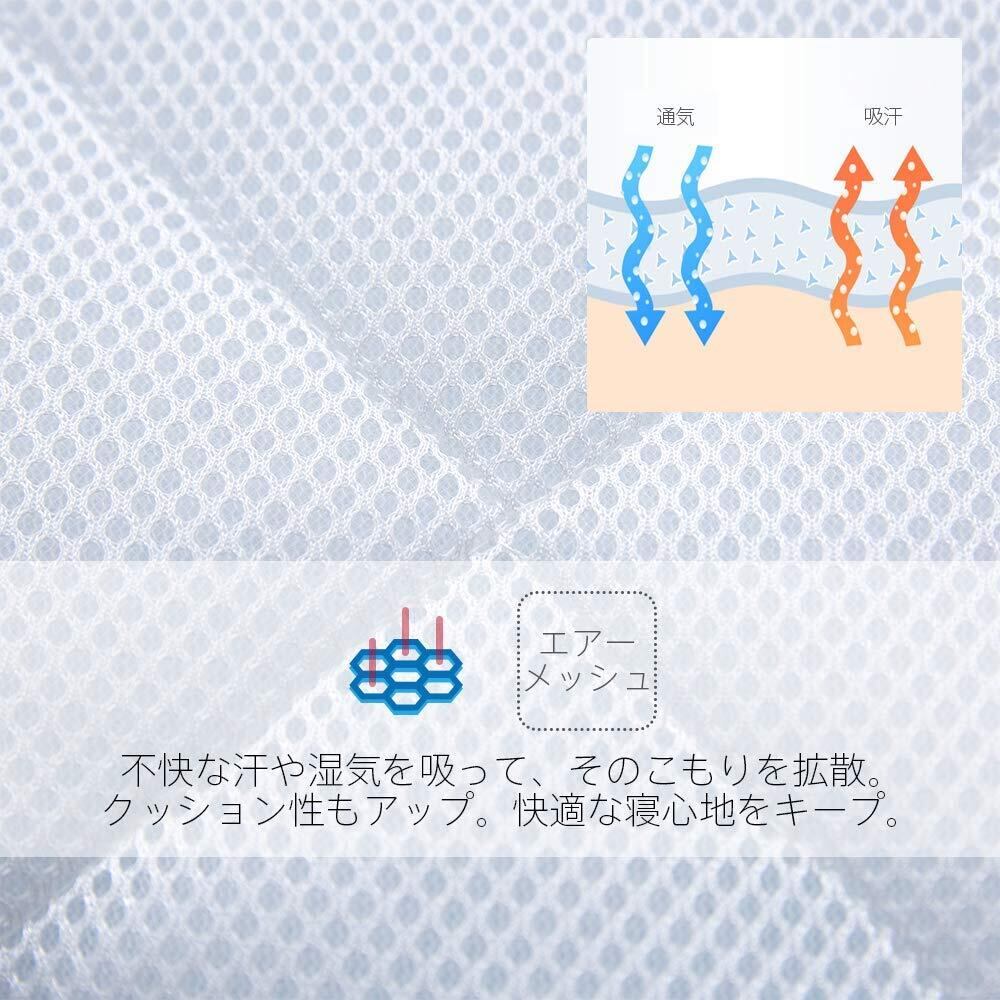 <快適な三層構造>:「サラット肌触り・ひんやり感」が特徴の接触冷感素材 & 「普通より厚くて、柔らかさと反発性」を兼ね備えた新モデル & 「通気性・速乾性」に優れたエアーメッシュ素材で、蒸れずに爽やか!