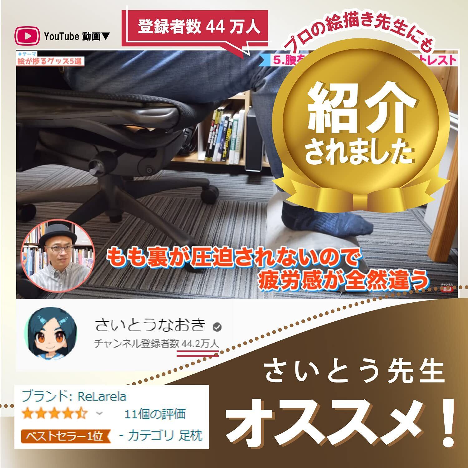 ReLarelaのフットレストは、硬めの設計で、足がしっかりと支えられます。デスクワークやリラックスタイムにぴったりなアイテムで、長時間の使用でも快適な姿勢をキープします。