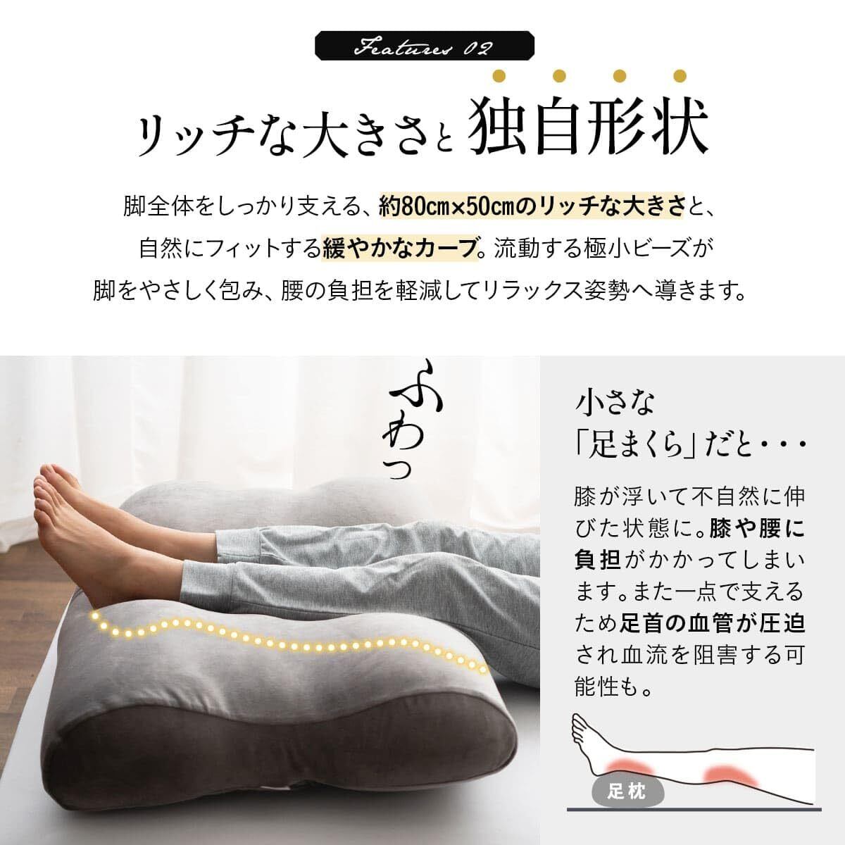 エムール マシュマロフットピロー 足枕 就寝用 しっとりグレー 日本製 国産極小ビーズ 幅約80㎝ リラックス 至福の睡眠