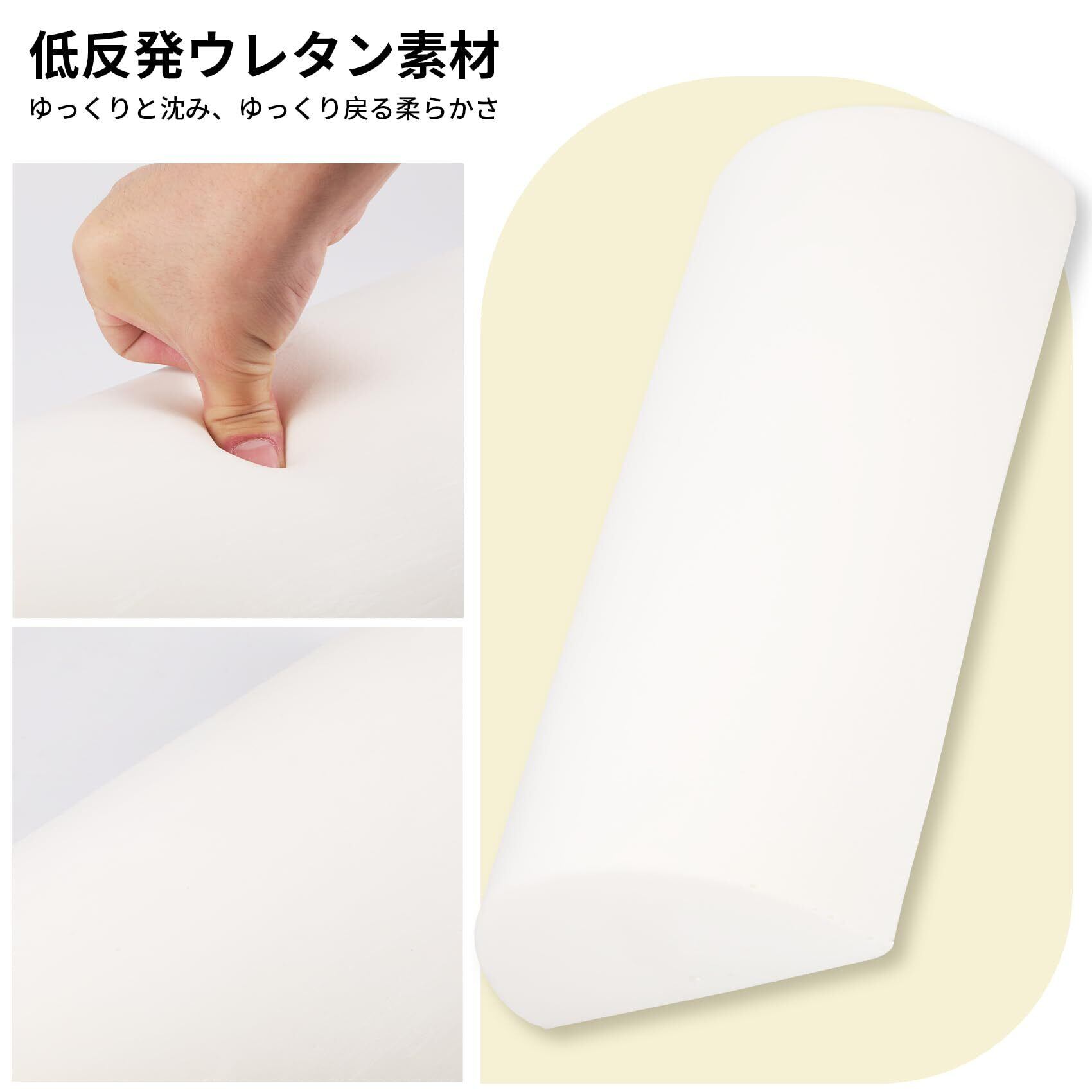 足に優しくフィット:低反発ウレタン素材を使用した足クッションは、沈み込みすぎず、適度な硬さで足元をしっかり支えます。一定の硬さを好み、物理的な支持感を求める方に適したフットクッションです