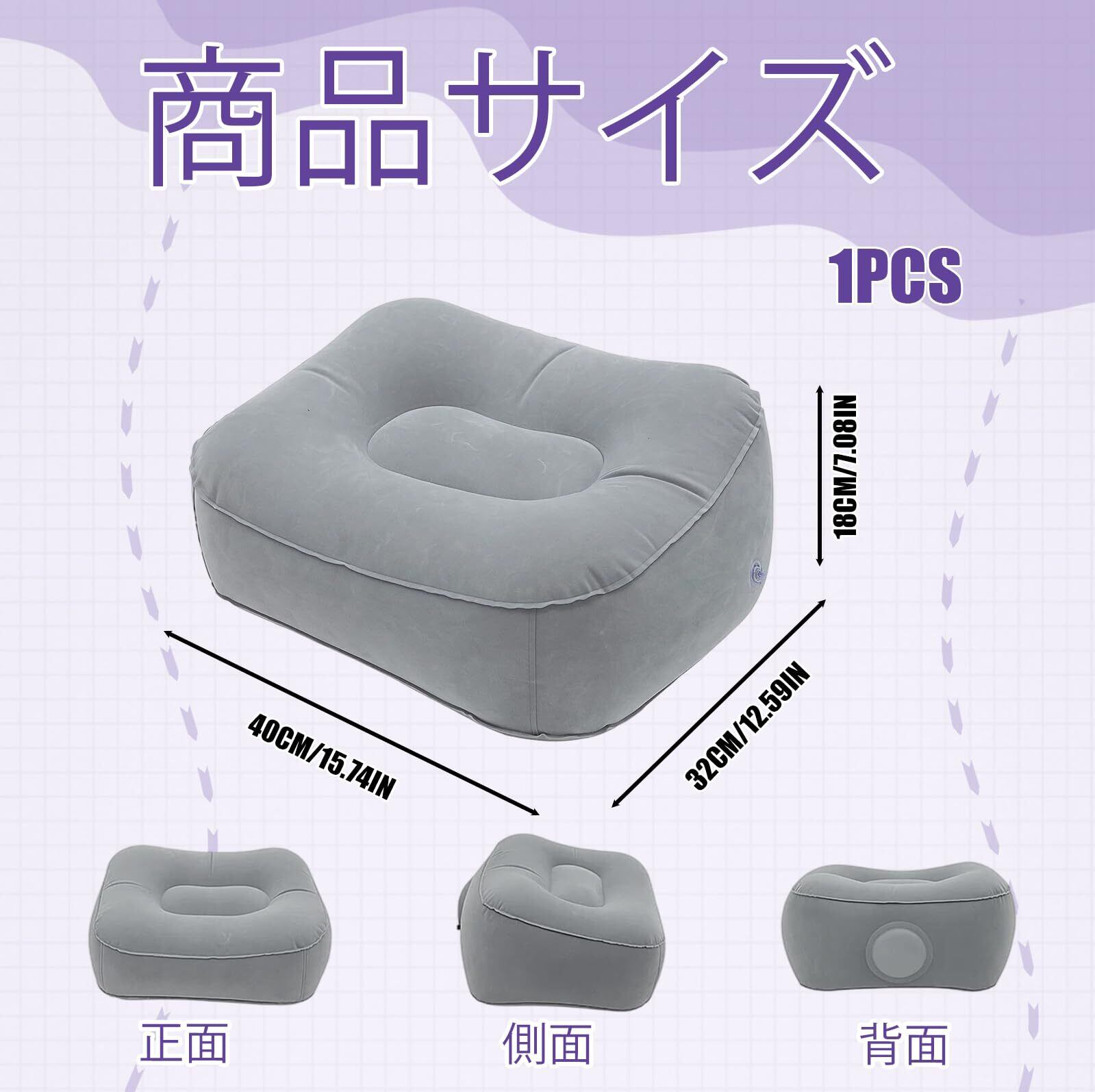 この製品は、血行促進をサポートし、長時間の使用でも快適です。掃除が簡単で、耐久性に優れています。フットレスト 飛行機用として、またエアー クッションとして多様なシーンでご利用いただけます。