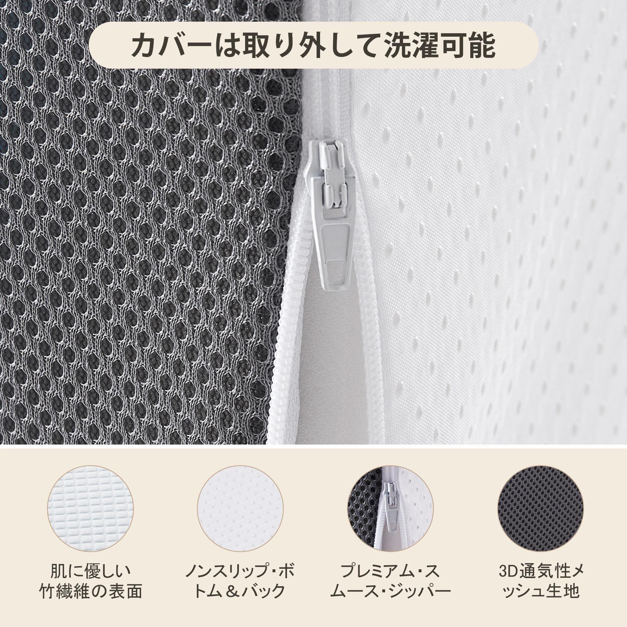 クッション表面には通気性に優れた素材を使用しているため、蒸れにくく快適。さらには、洗濯可能なカバーで、いつでも清潔に保つことができます。