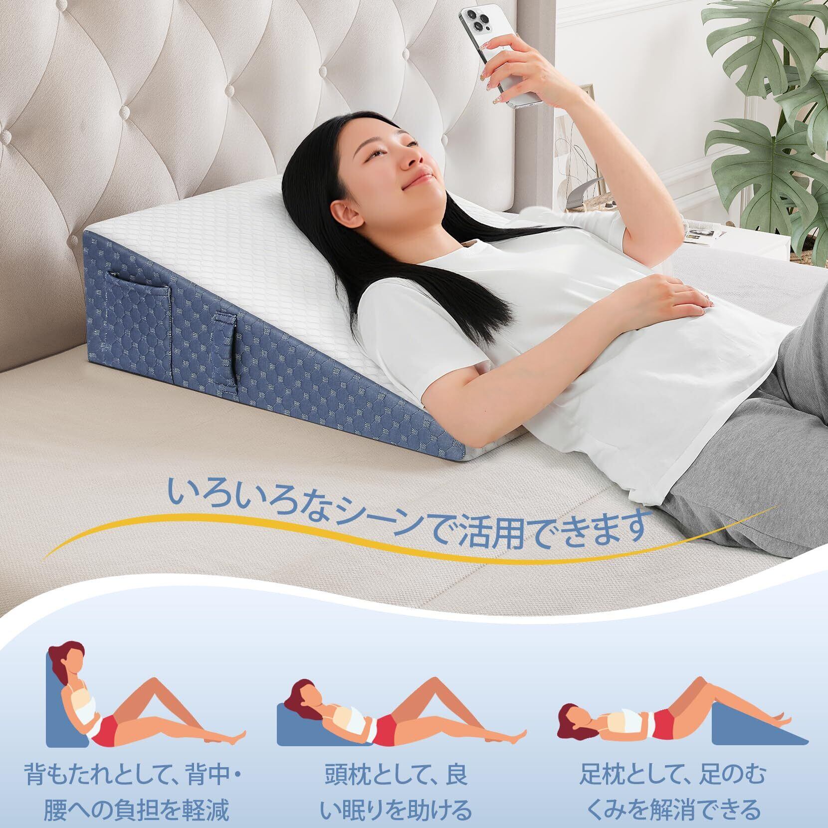 ️️【快適サポート傾斜枕】テレビ鑑賞・読書・仮眠時の背もたれとして、また就寝時のいびき軽減・逆流性食道炎対策にお役立ちます。 なだらかな傾斜が上半身を優しく支え、手術後の回復期の方・妊婦様にも安心してお使いいただけます。 胃の圧迫感軽減・呼吸のしやすさ、腰足の負担軽減を通じ、昼夜を問わず快適な姿勢保持をサポートいたします。